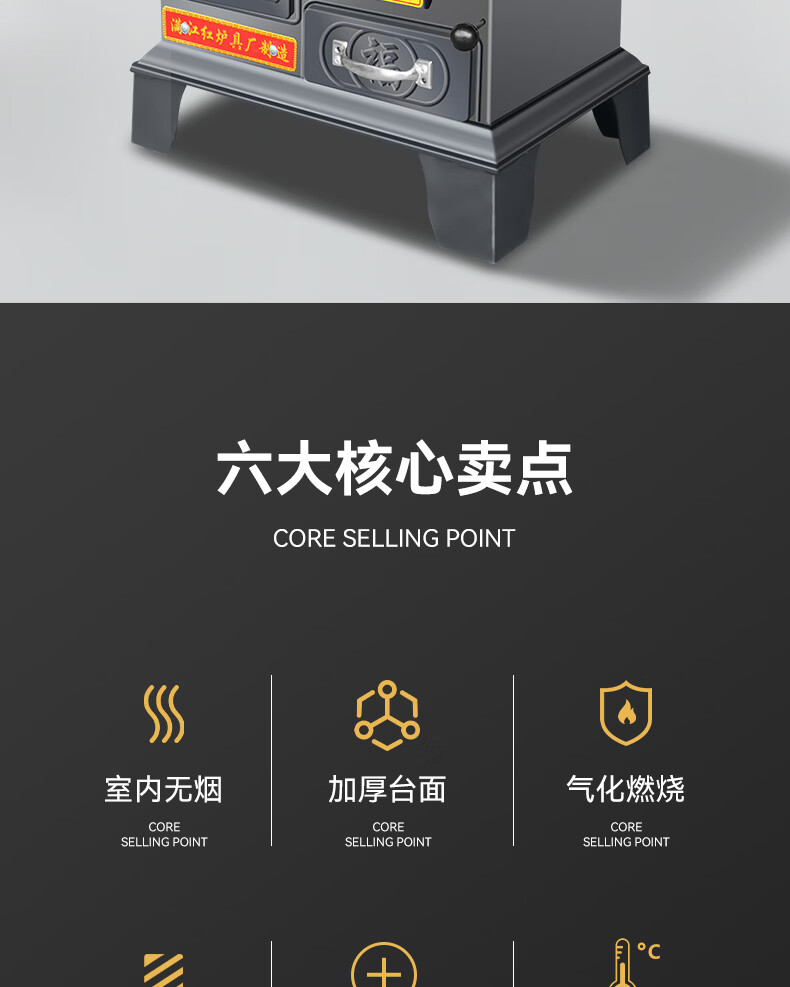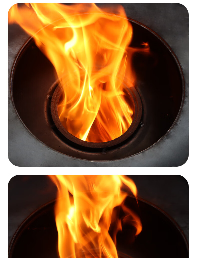 灶台设计的炉面大,火力猛,加上这么多木头烧的火力可猛,试烧了把表面油层防护都烧完了,现在是真好,没有一点烟,也已经随着高温实现了气化的效果,达到无烟的状态,效果非常满意,室内取暖再也不怕冬天了,家里暖和的幸福满满