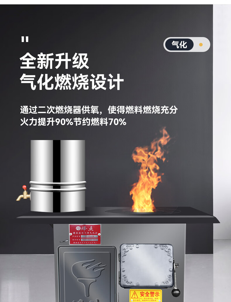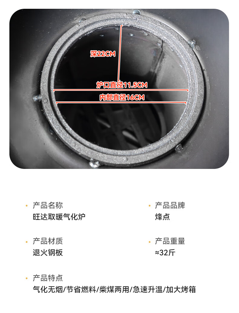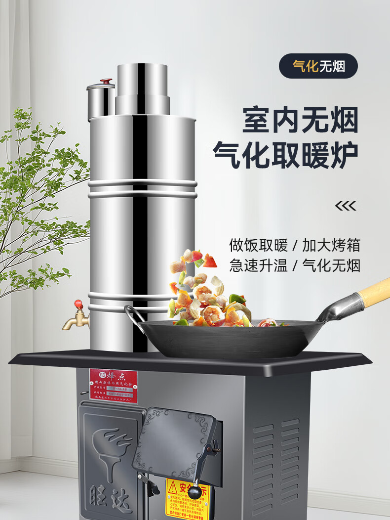 烽点新型取暖气化炉灶室内无烟农村家用柴煤两用移动露营升温户外烤火 旺达气化取暖炉+3米烟管配件