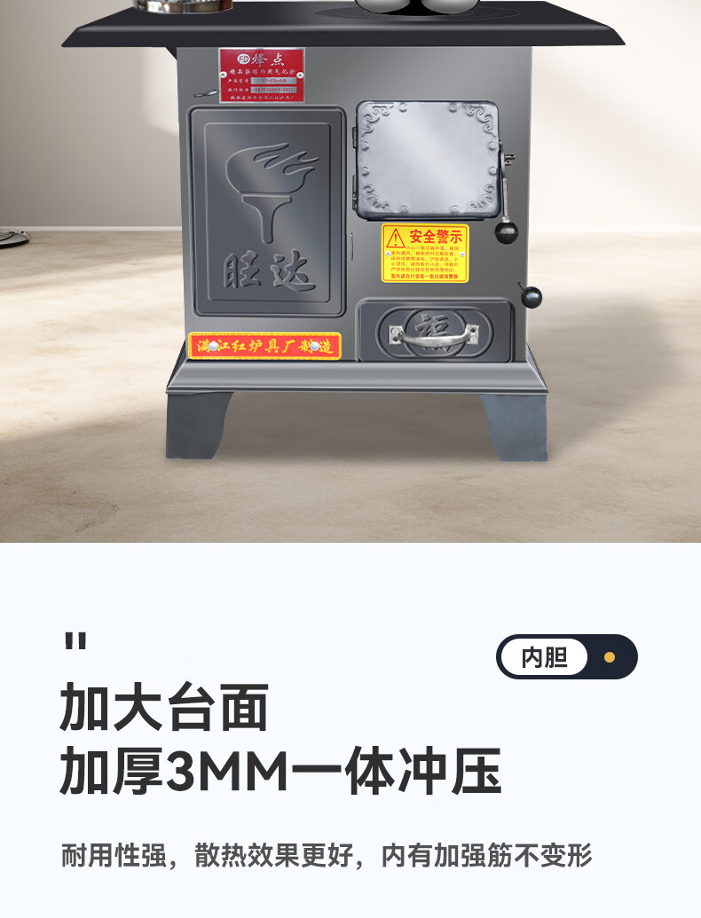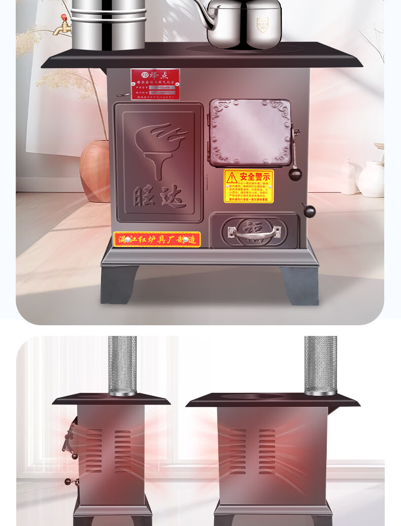 古慕妮家用煤炭取暖炉子烤火炉柴煤两用炉室内炉节能炉气化柴碳炉 无气化功能前开经典小胆