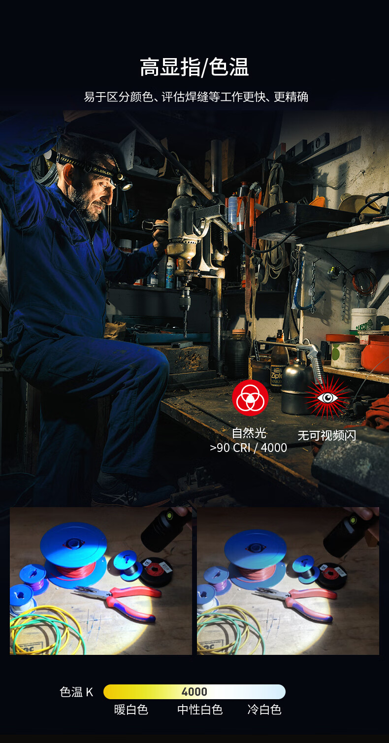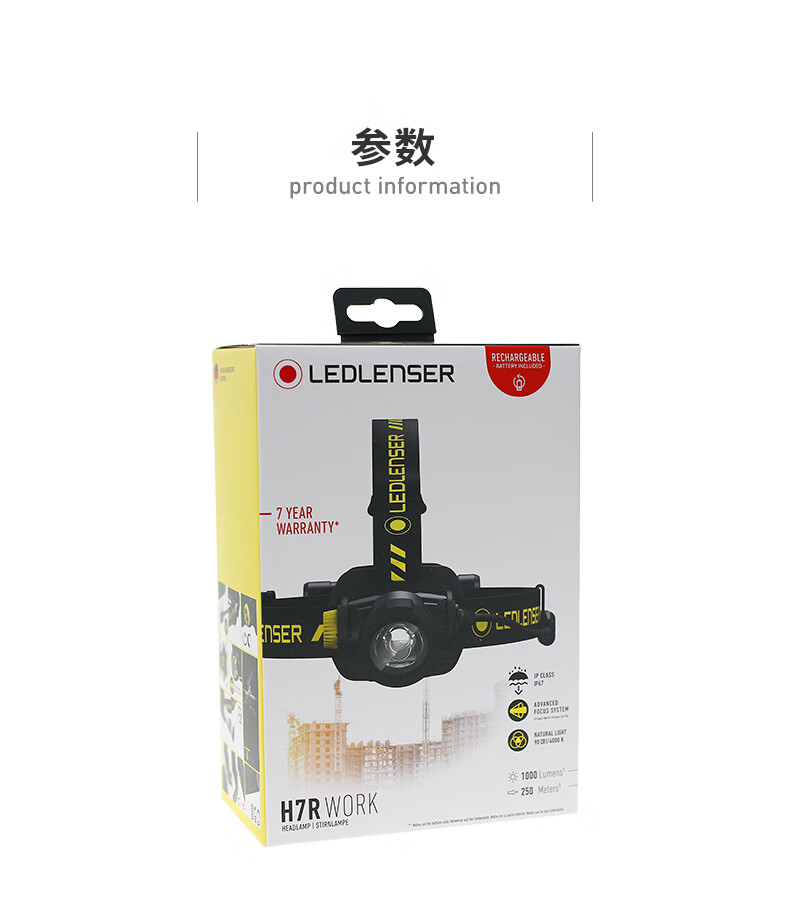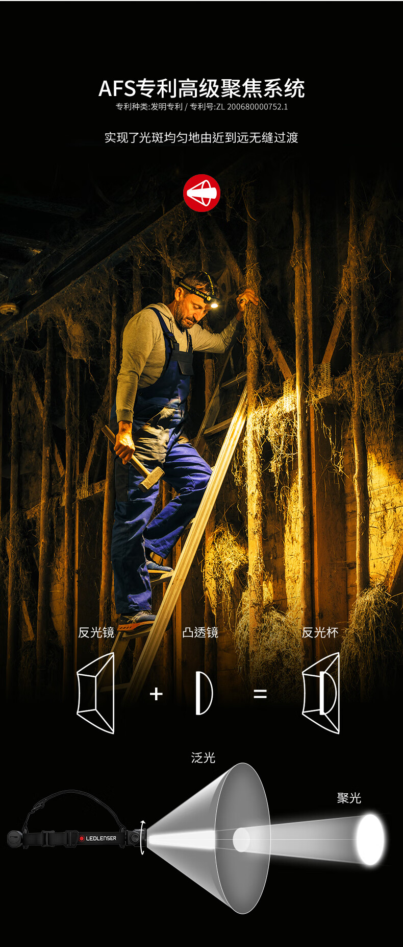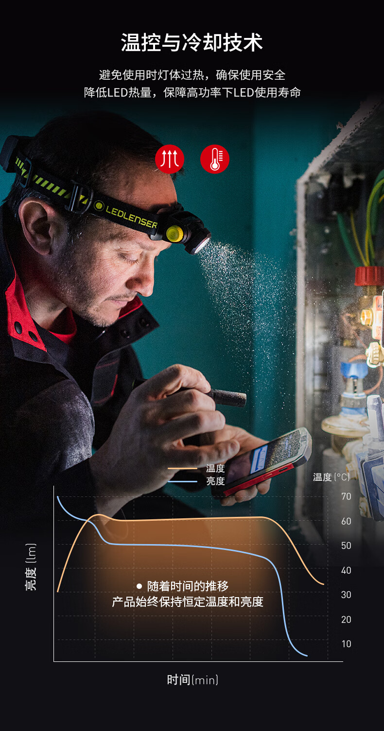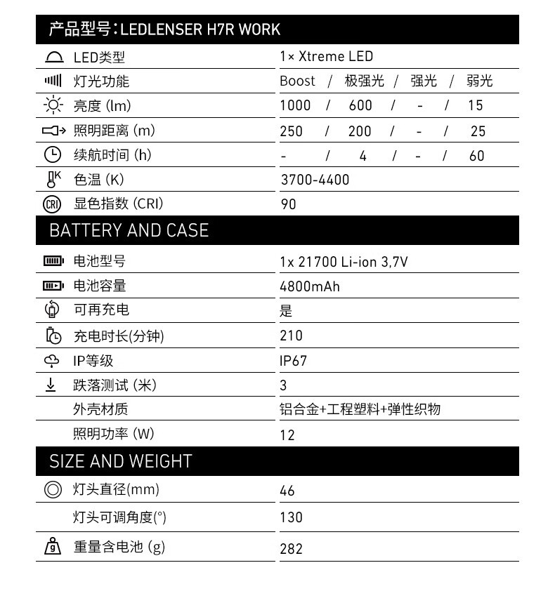 莱德雷神(LED LENSER)H7R Work工作头灯强光充电超亮夜钓超长续航头戴式黄光灯 黑色 WORK 专业版【黄光】