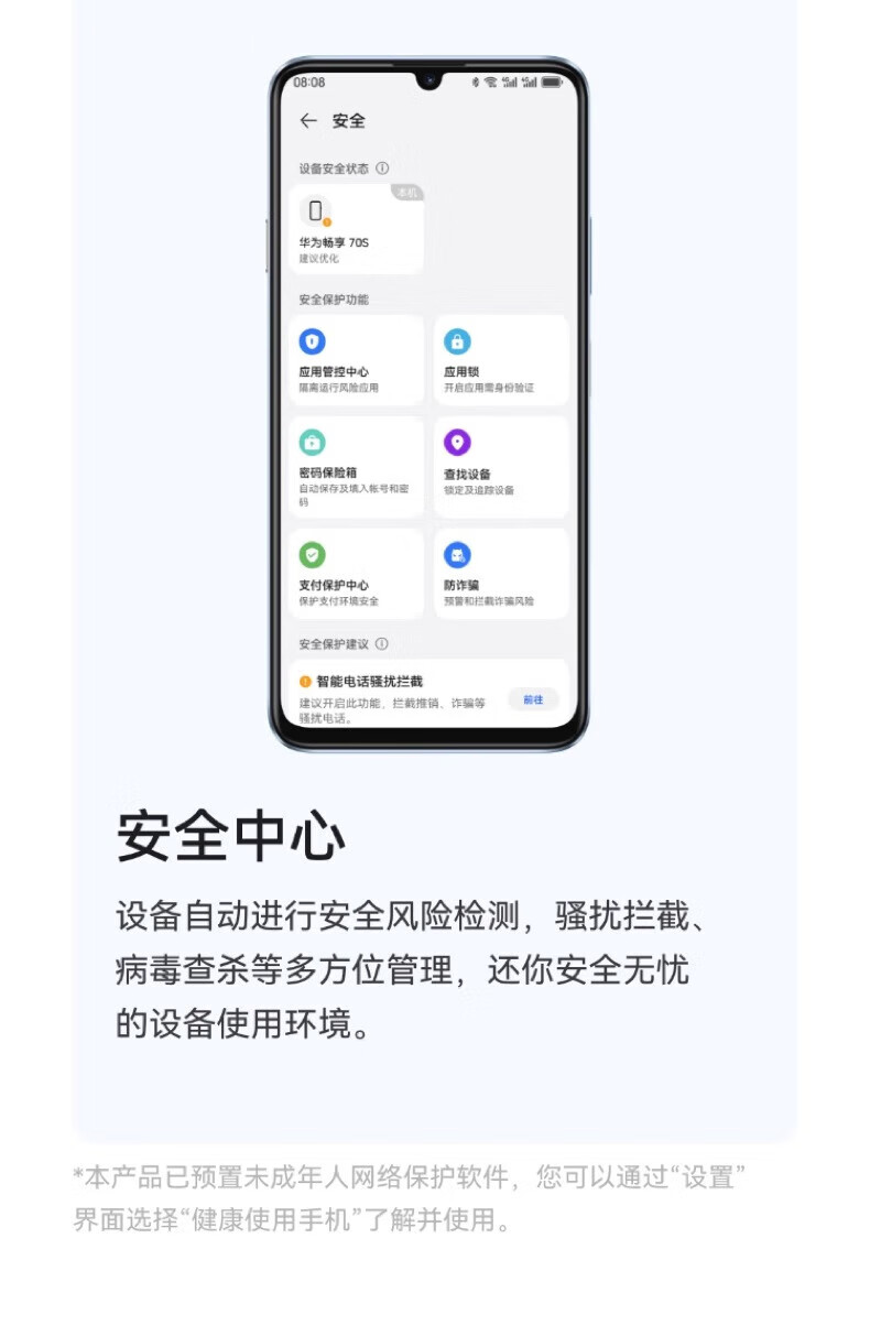 HUAWEI/华为 畅享70S 6.75英寸AOD护眼大屏 6000mAh巨鲸超能续航 鸿蒙智能手机 雪域白 8+256GB