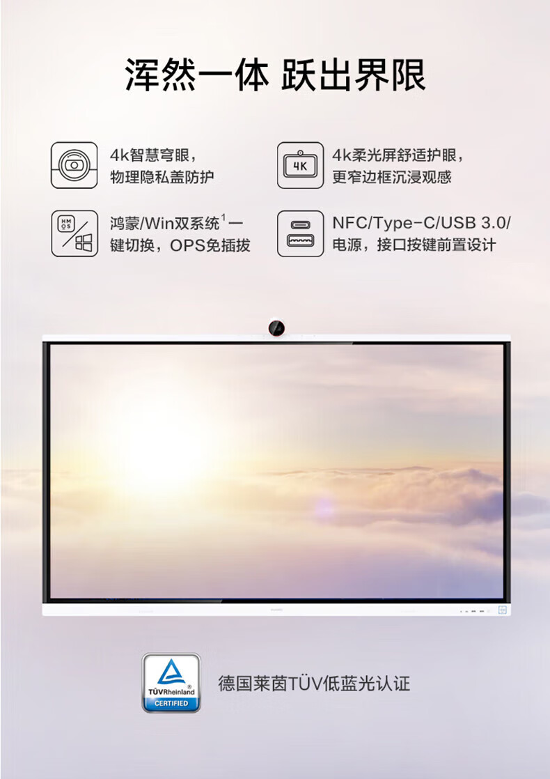 华为 IdeaHub Board3 Pro会议平板教学一体机鸿蒙系统4K防蓝光多媒体电视智慧触摸屏 65吋鸿蒙系统【落地支架+免费送装】