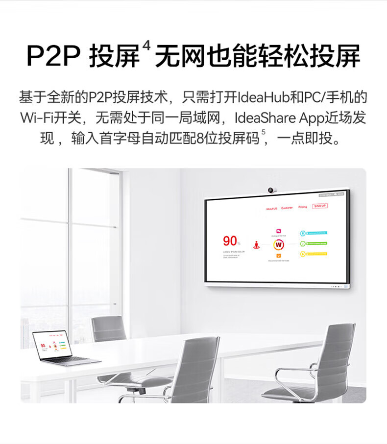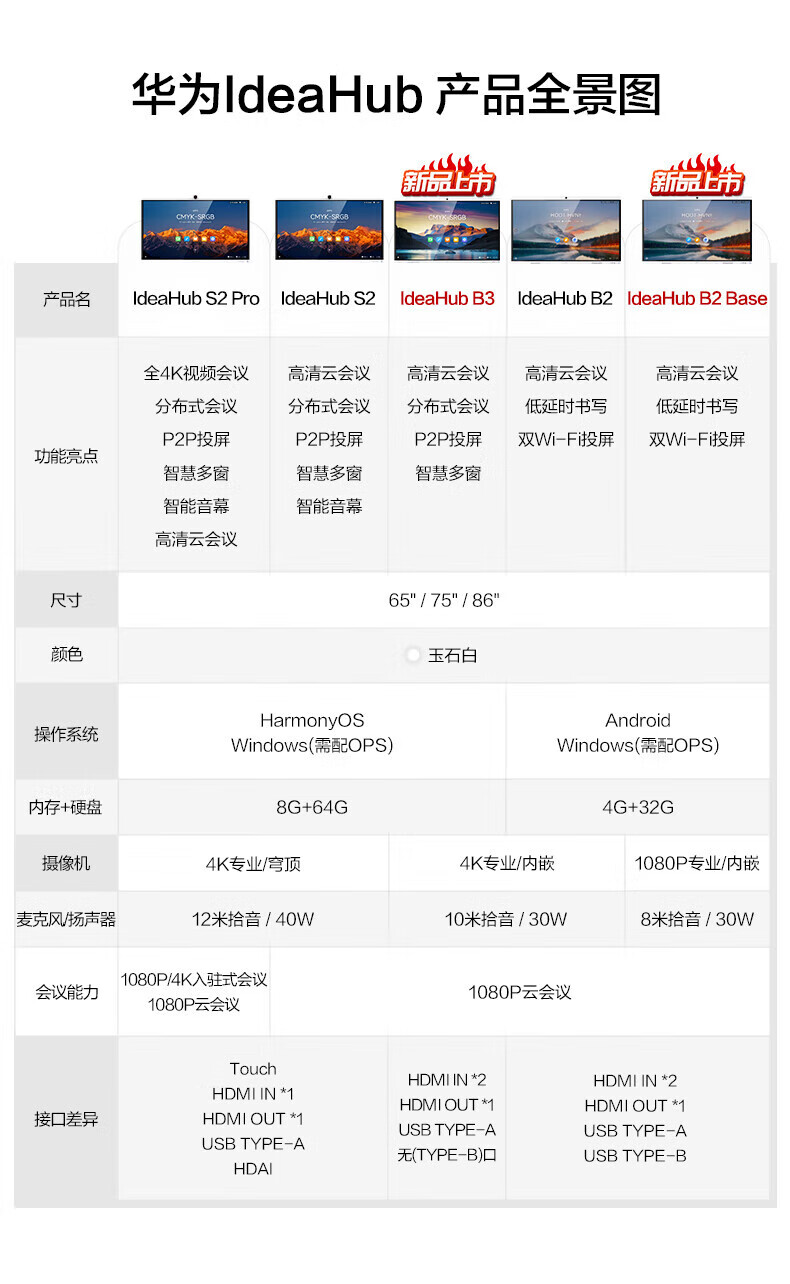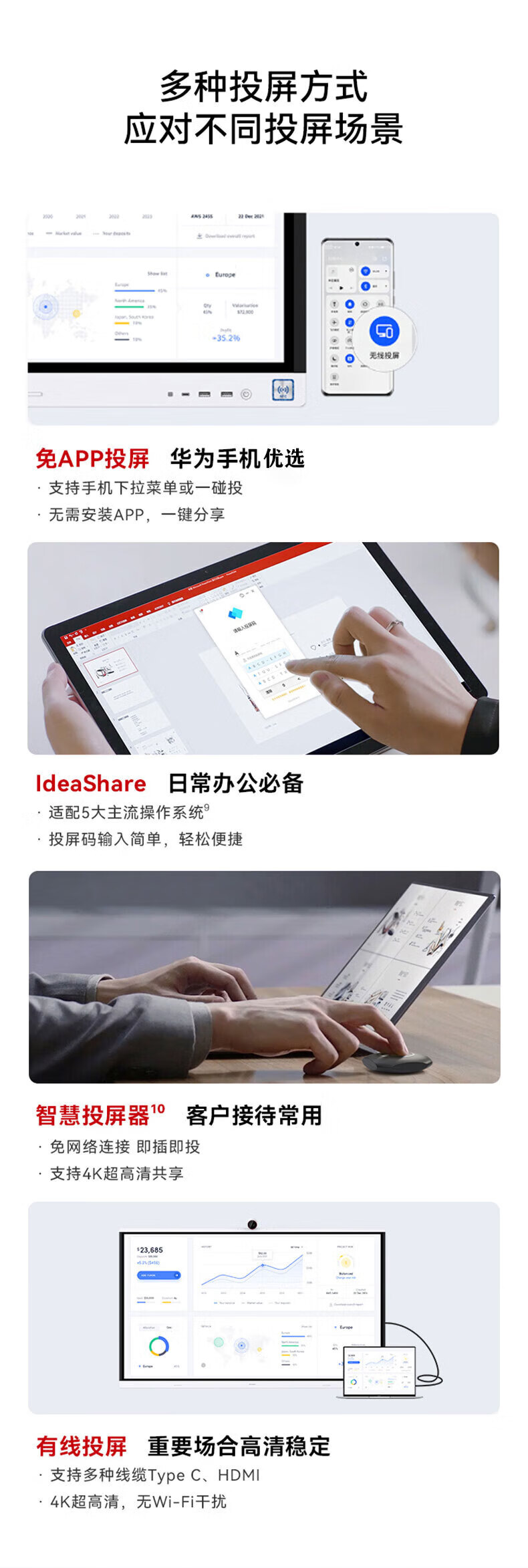华为会议平板一体机IdeaHub B2 Base 65英寸4K高清智慧屏 多媒体教学一体机 触摸电子白板 办公室智能电视显示器