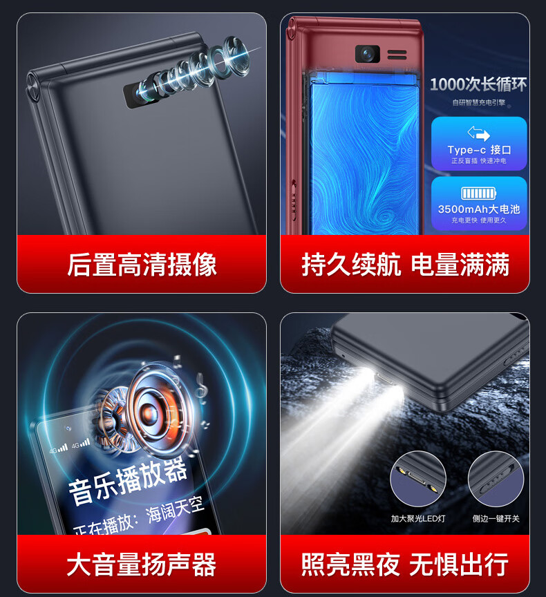 金立新款STR5翻盖3.5英寸大屏大字大声音微信抖音快手全网通4G电信老年手机双屏老人机男女商务按键机 红色