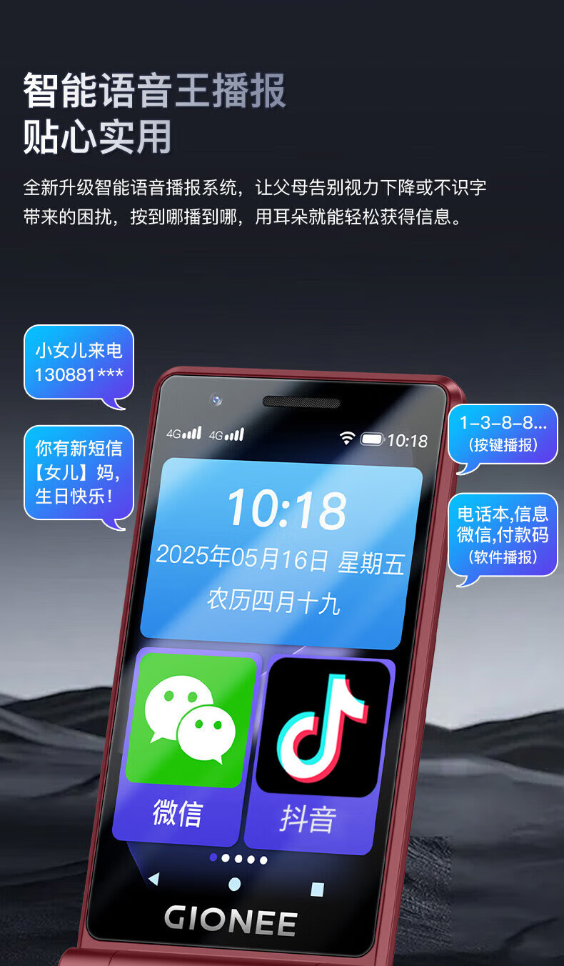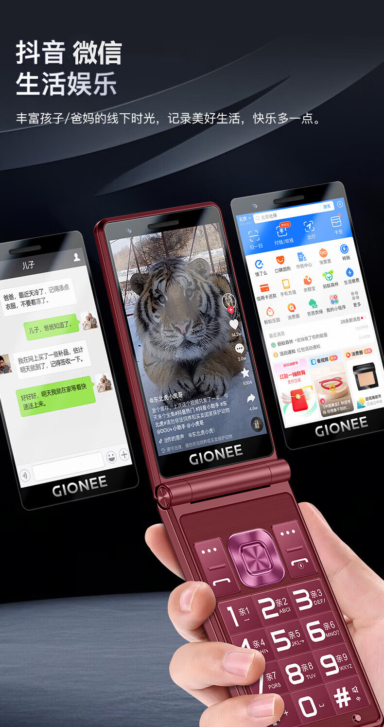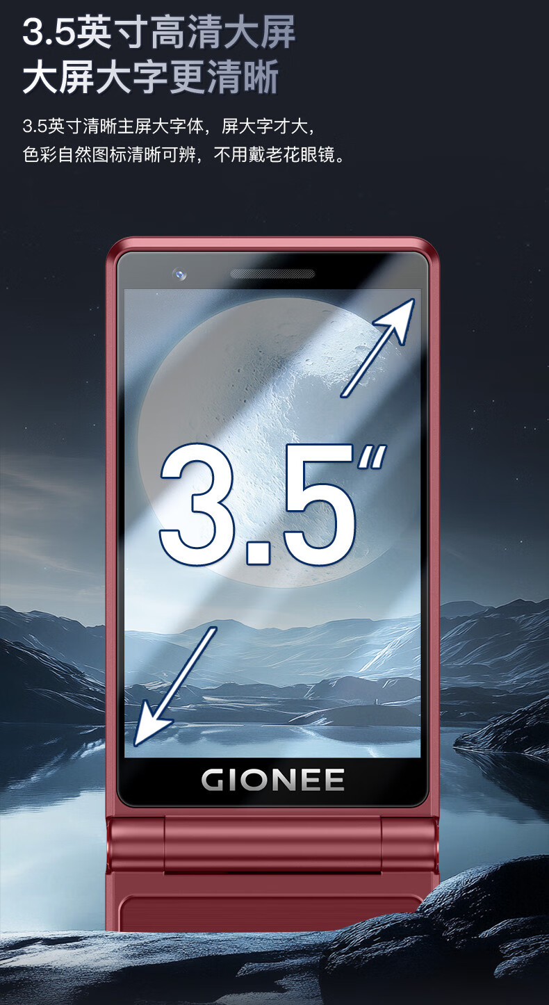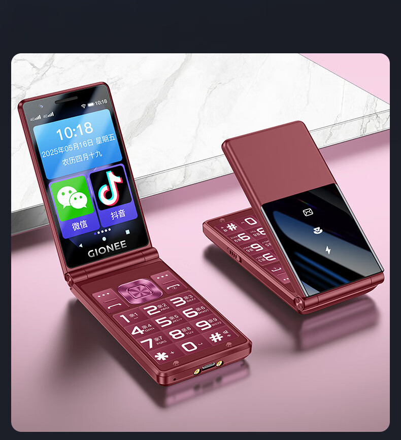 金立V16D老人翻盖智能手机3.5英寸微信可视频抖音按键触摸屏长续航老年机4G全网通双卡双待学生备用 红色 32GB【微信智能版】