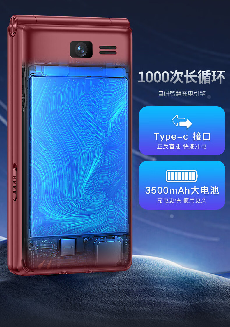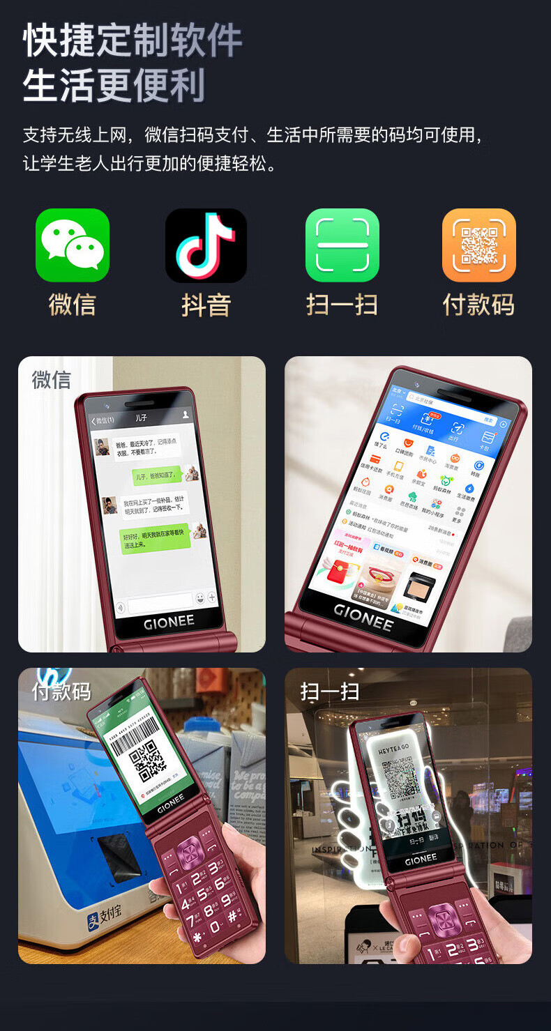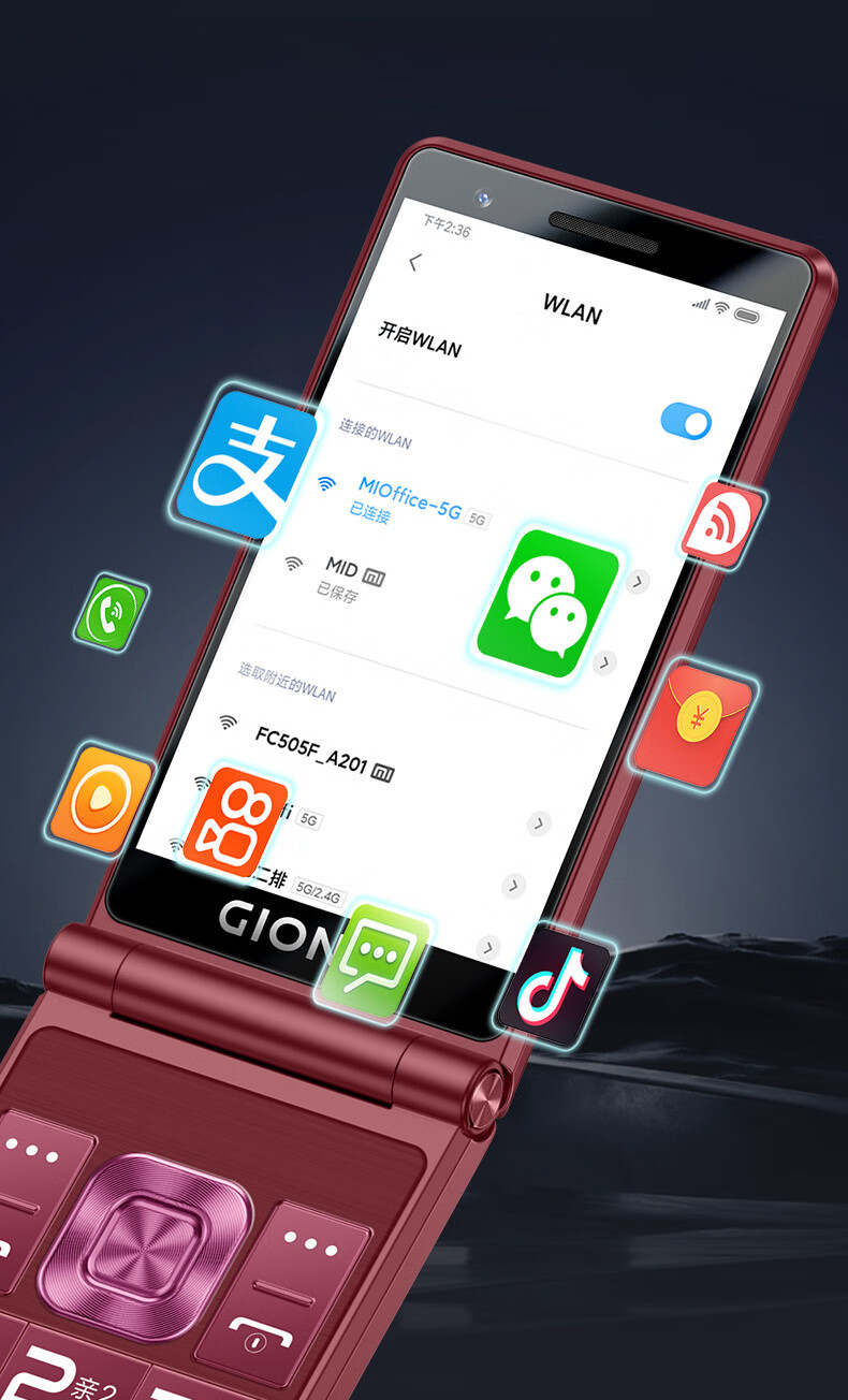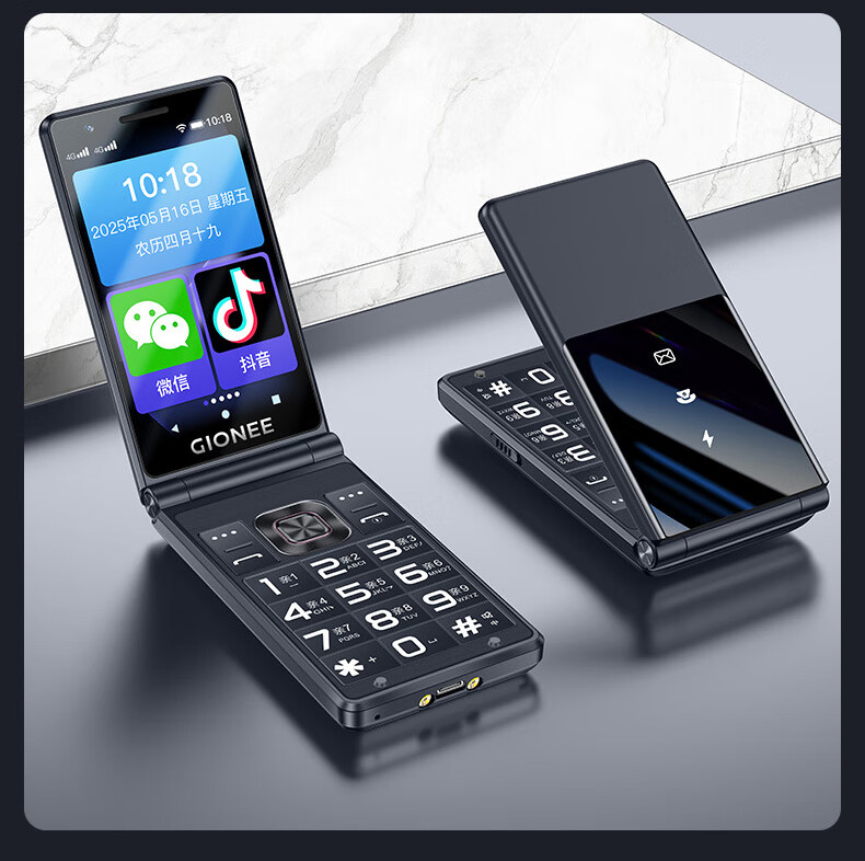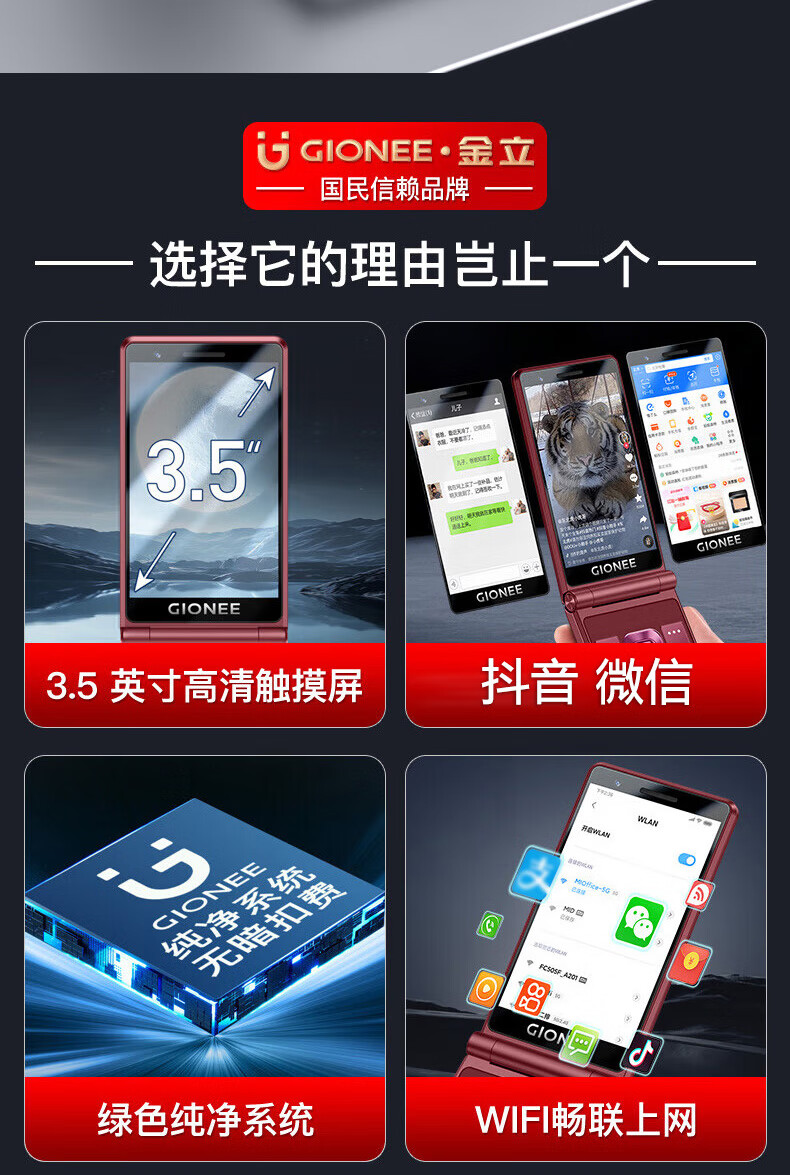 金立V16D老人翻盖智能手机3.5英寸微信可视频抖音按键触摸屏长续航老年机4G全网通双卡双待学生备用 红色 32GB【微信智能版】