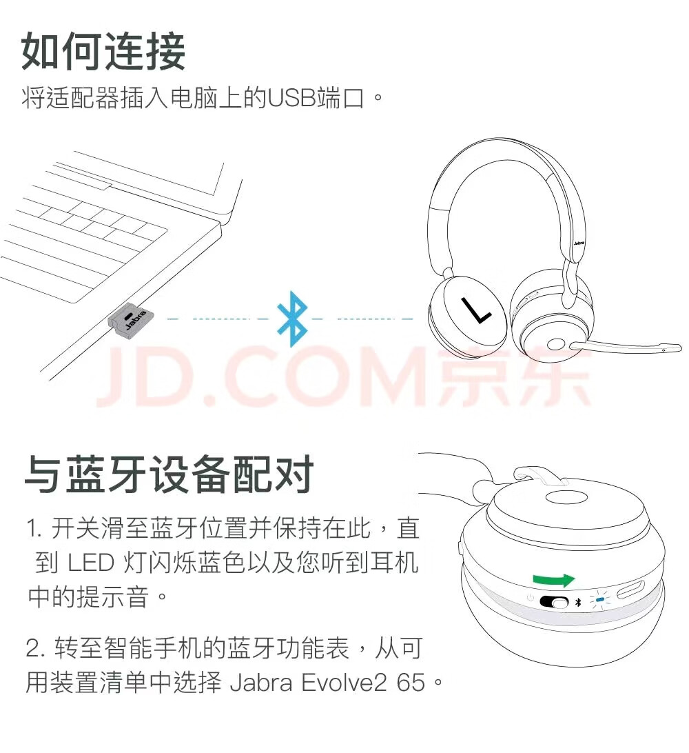 JABRA捷波朗(Jabra)Evolve2 65 系列 无线蓝牙头戴主动降噪耳机长续航在线教育商务办公支持以旧换新 Evolve 2 65 FLEX