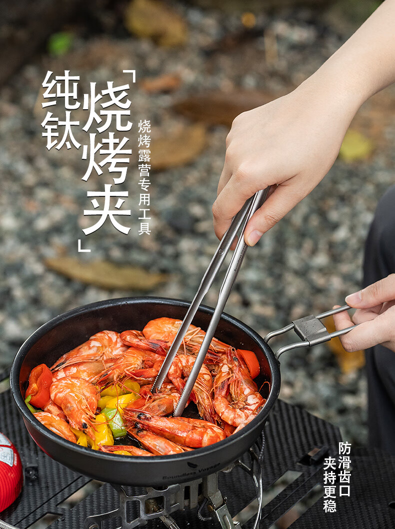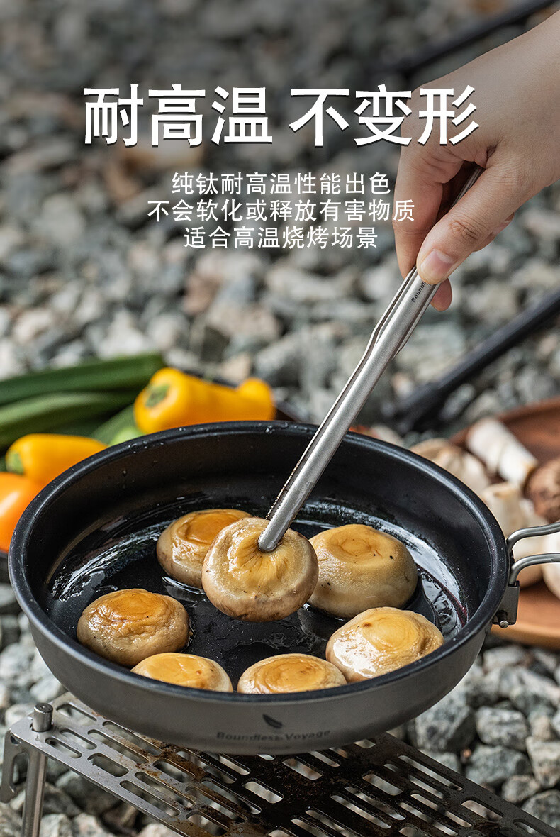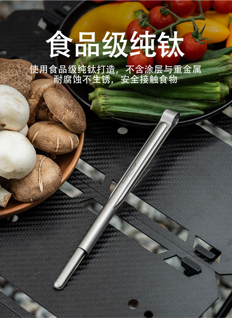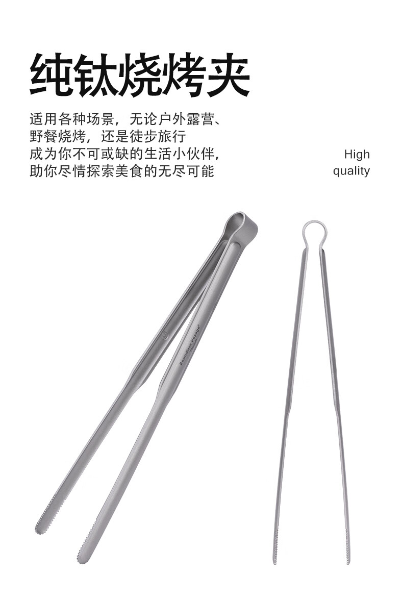 必唯纯钛户外烧烤夹子露营茶叶夹便携耐高温野营多功能工具蔬菜夹防滑 Ti1014T