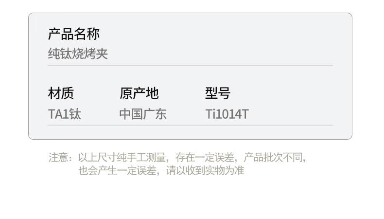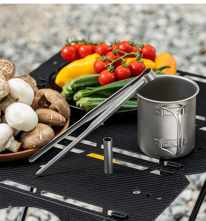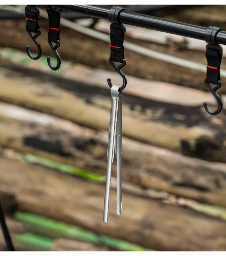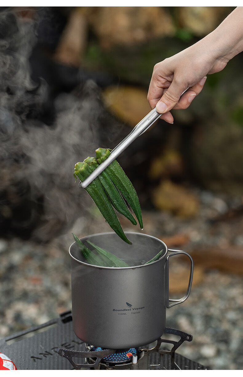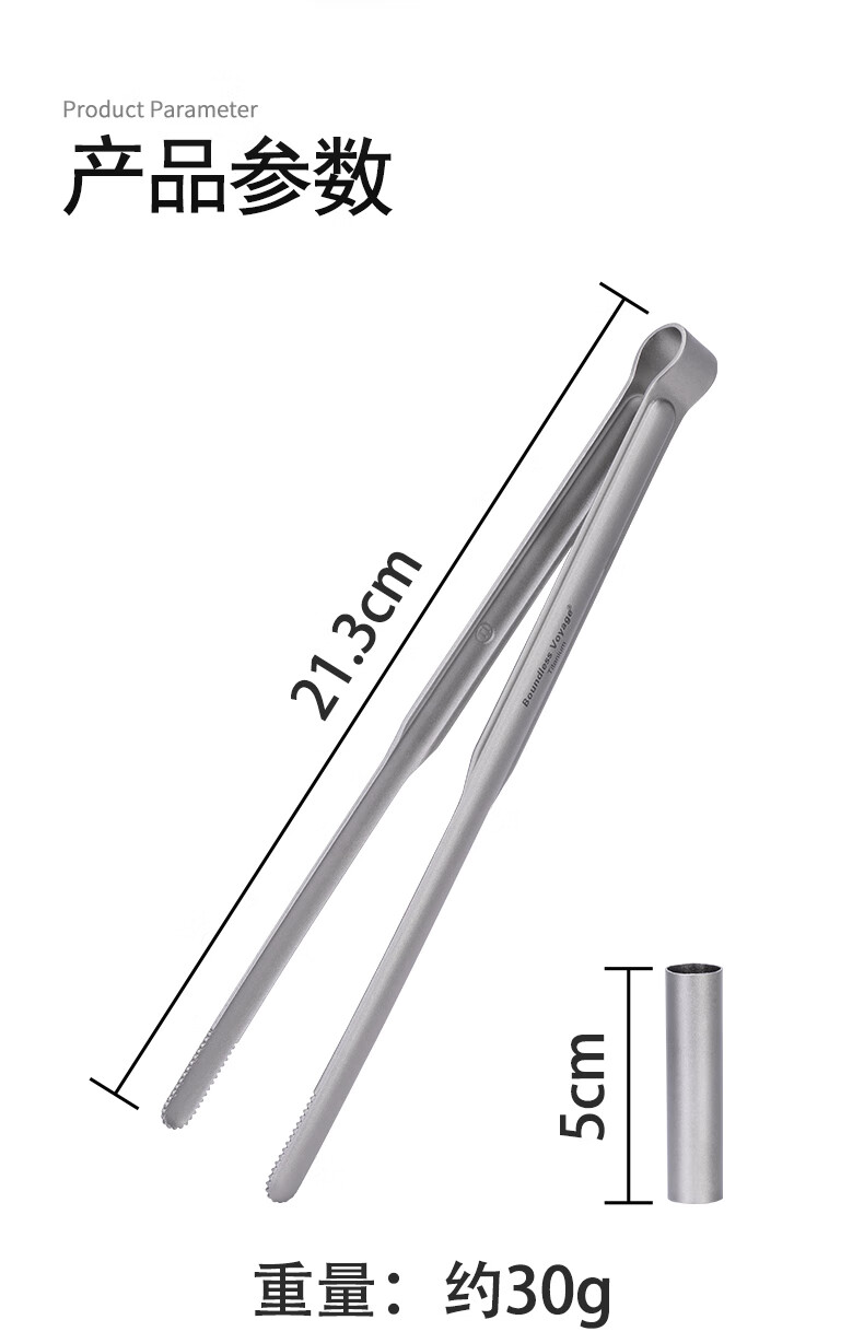 必唯纯钛户外烧烤夹子露营茶叶夹便携耐高温野营多功能工具蔬菜夹防滑 Ti1014T