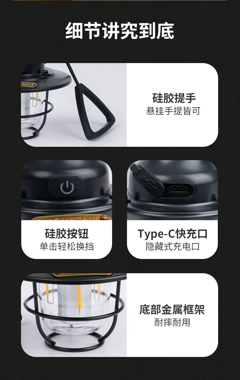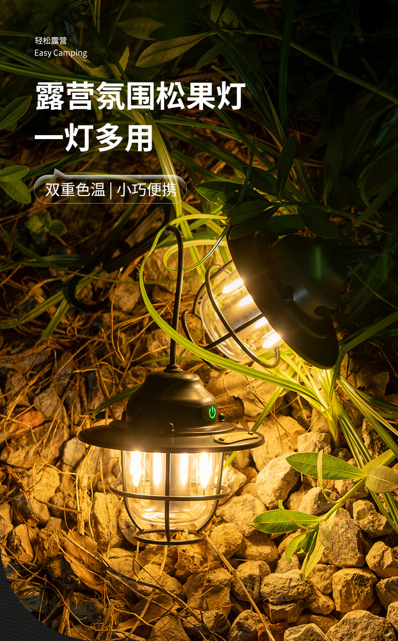 PENESAS 复古精致户外露营灯帐篷灯吊灯超长续航充电LED灯松果灯 黑色松果灯