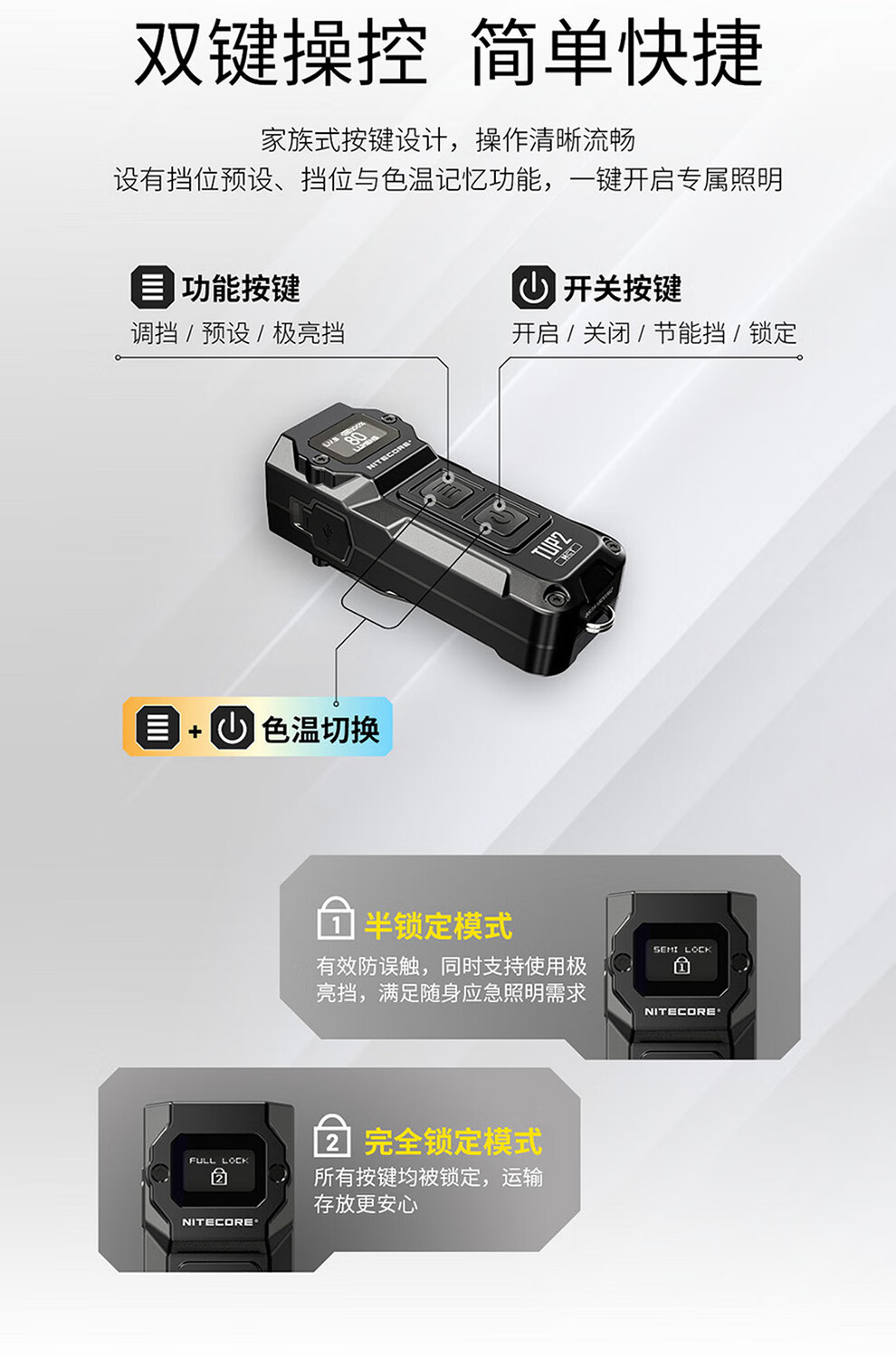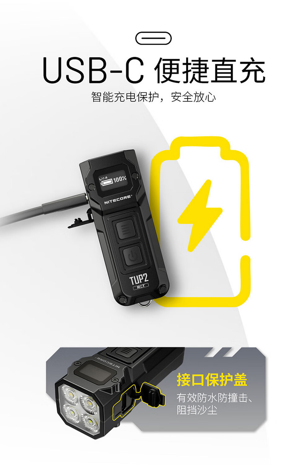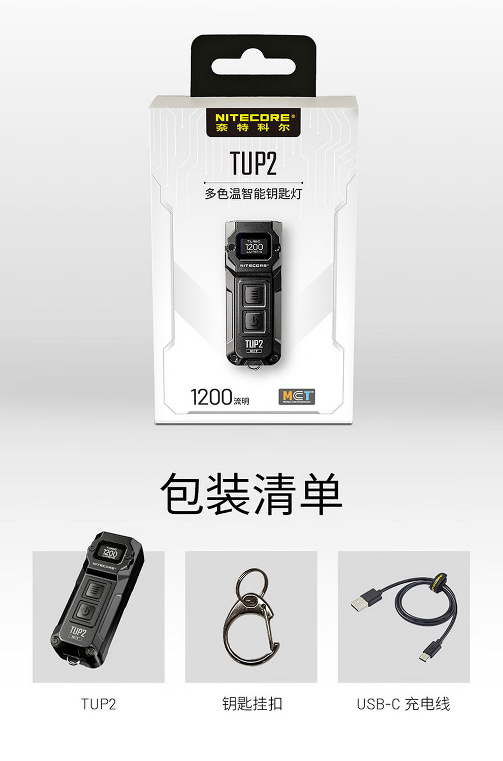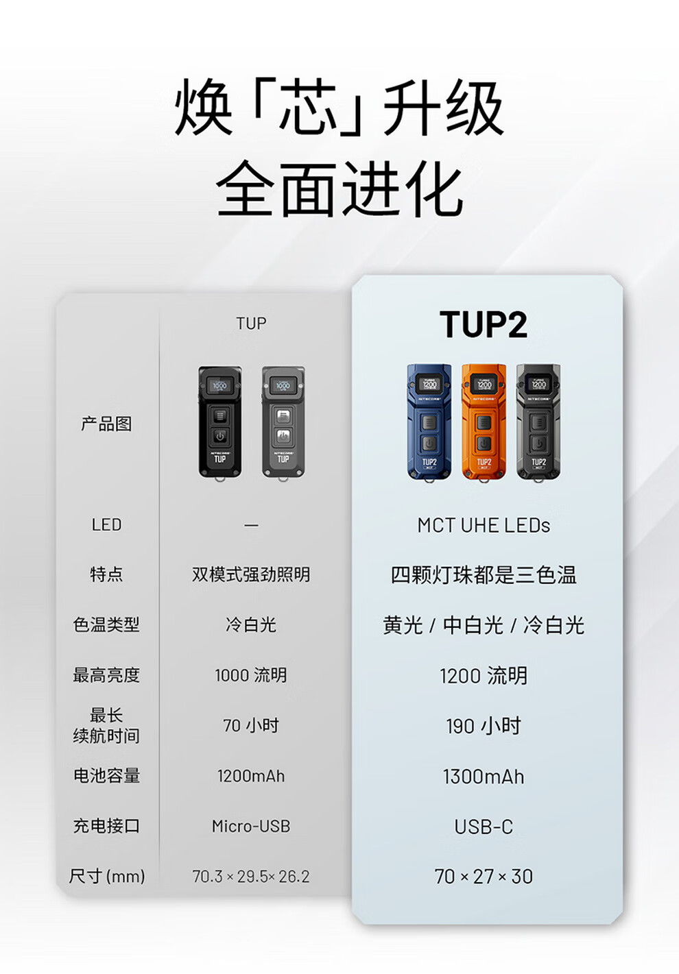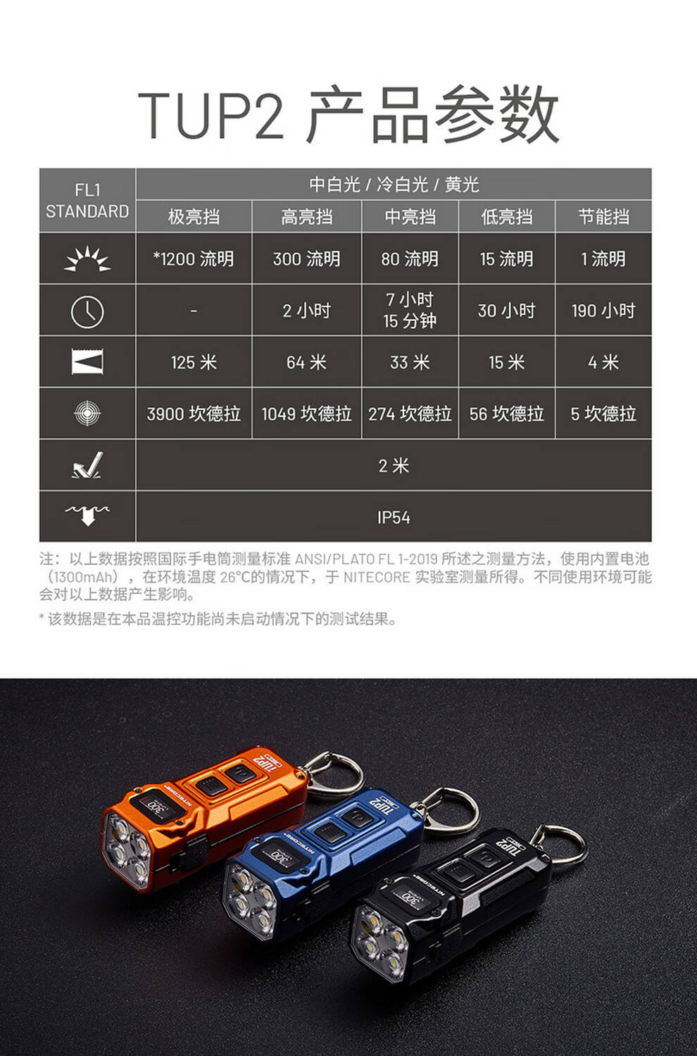 奈特科尔(NITECORE)迷你手电筒TUP强光超亮远射充电家用户外小型便携EDC金属钥匙扣灯 TUP2标配 蓝色