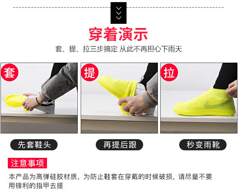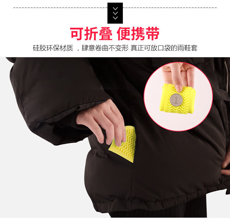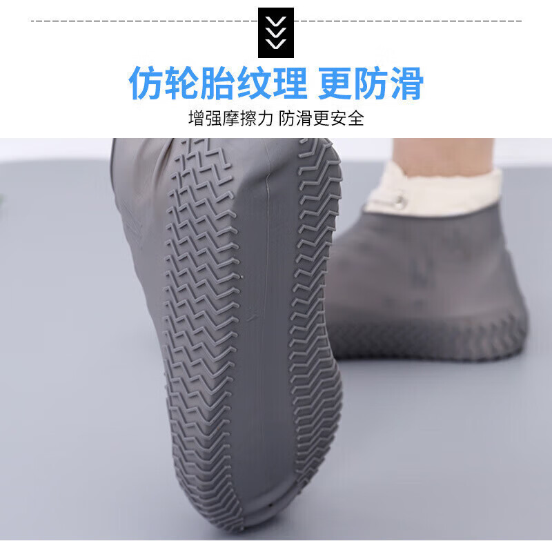 勋狸粑防水鞋套硅胶防滑雨鞋套防滑加厚耐磨户外防水鞋套防雨男女雨靴套 黑色【高弹性/升级款】 1双【34-46男女通用】独立包装