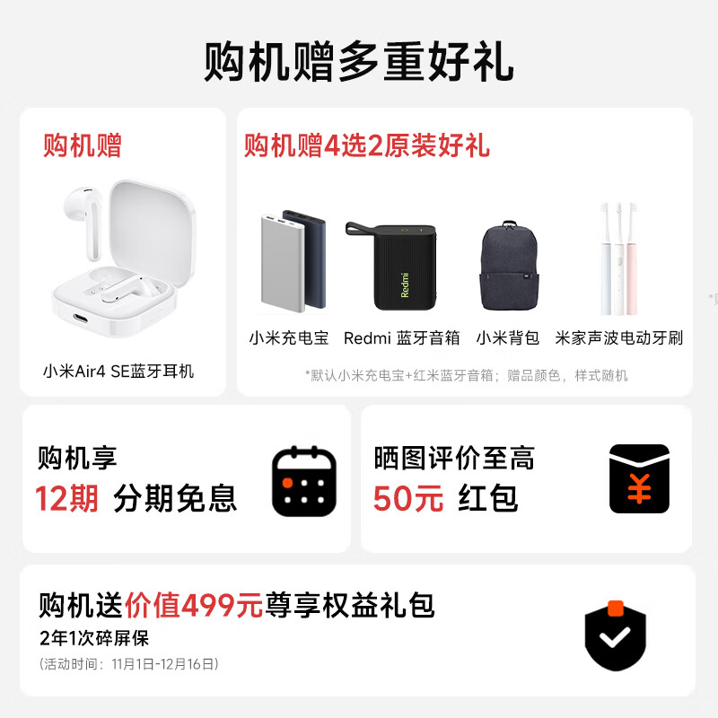 小米(MI)promax15 Pro 16GB+1TB 骁龙8版 分期 免息 进店选 红米Turbo 4 白色12GB+256GB 官方标配不分期