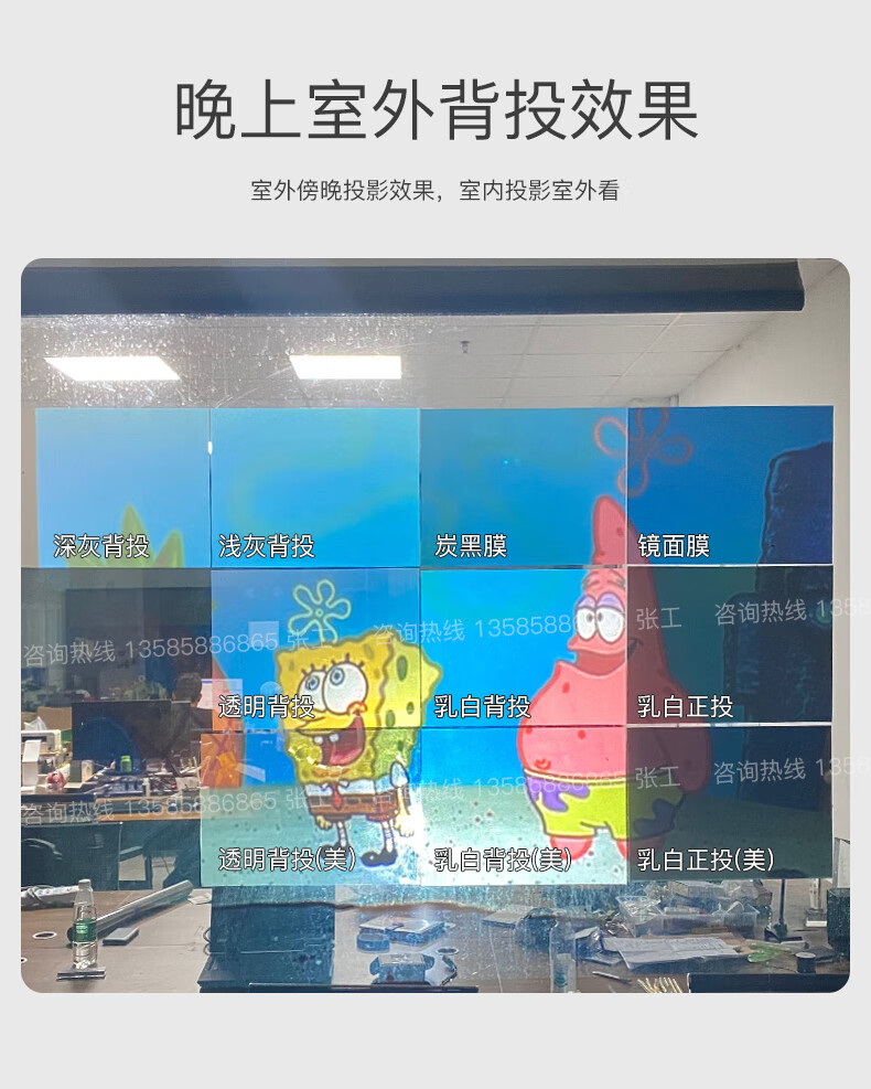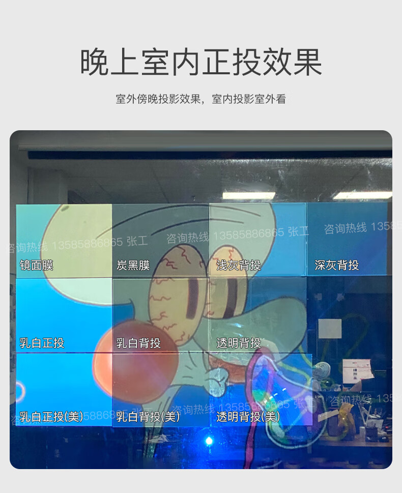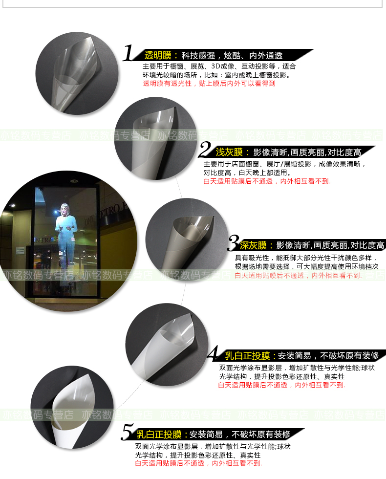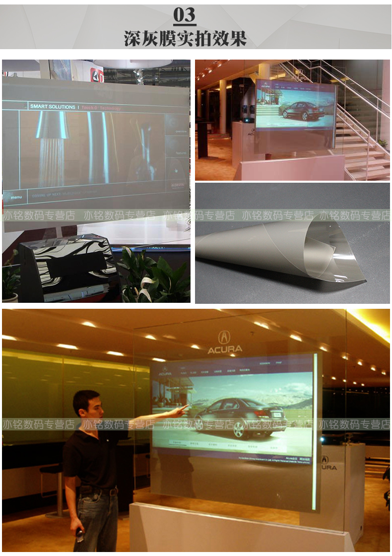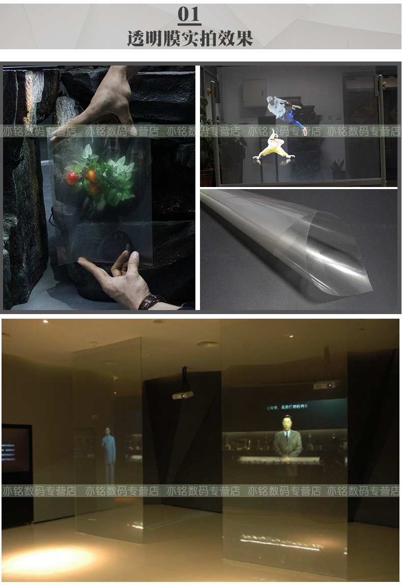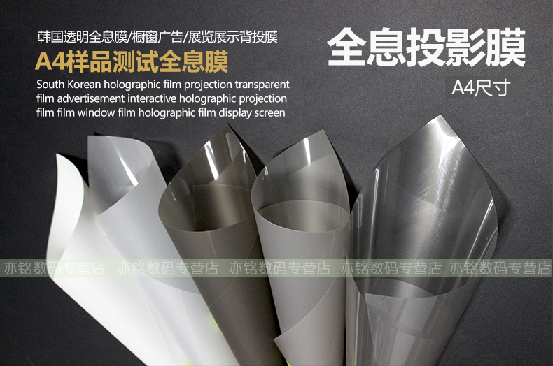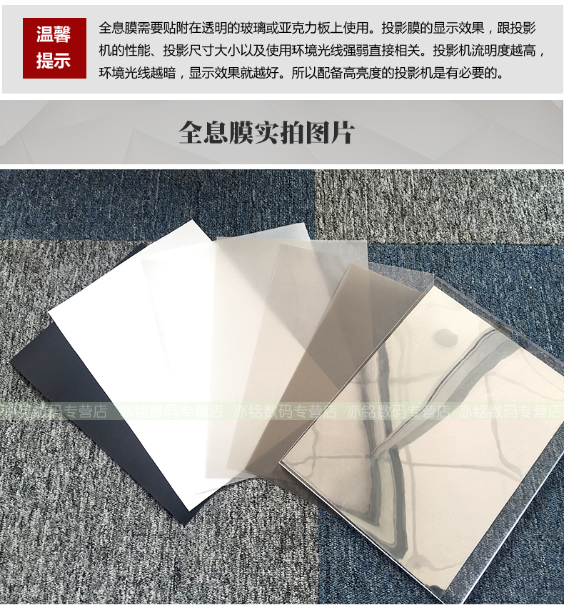 争飞全息投影膜裸眼3D橱窗玻璃背投贴膜展厅餐厅投影机影像透明浅灰深灰膜互动广告幻影成像膜 全息膜样品