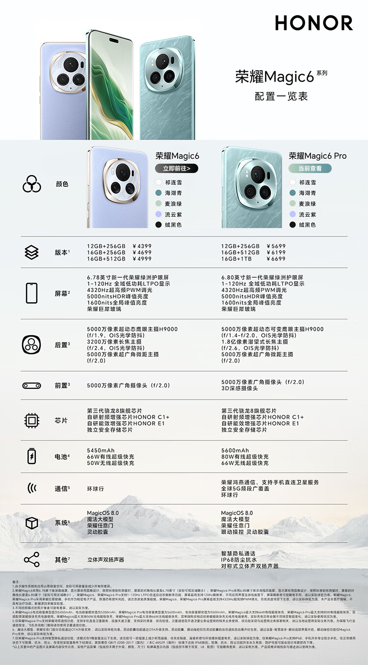 • 荣耀Magic6 Pro 旗舰新品5G手机 荣耀鸿燕通讯 第三代骁龙8芯片 单反级鹰眼相机 巨犀玻璃  流云紫 12GB+256GB