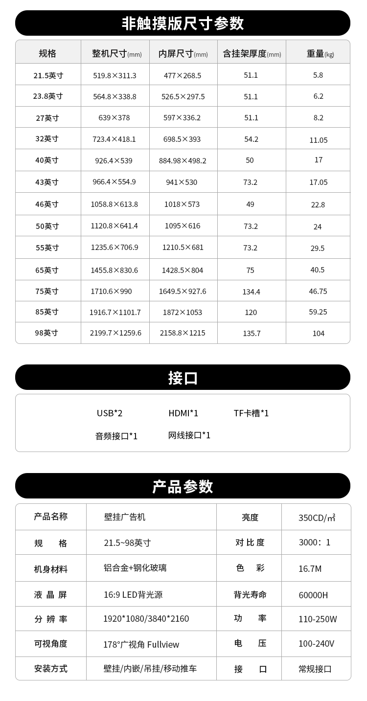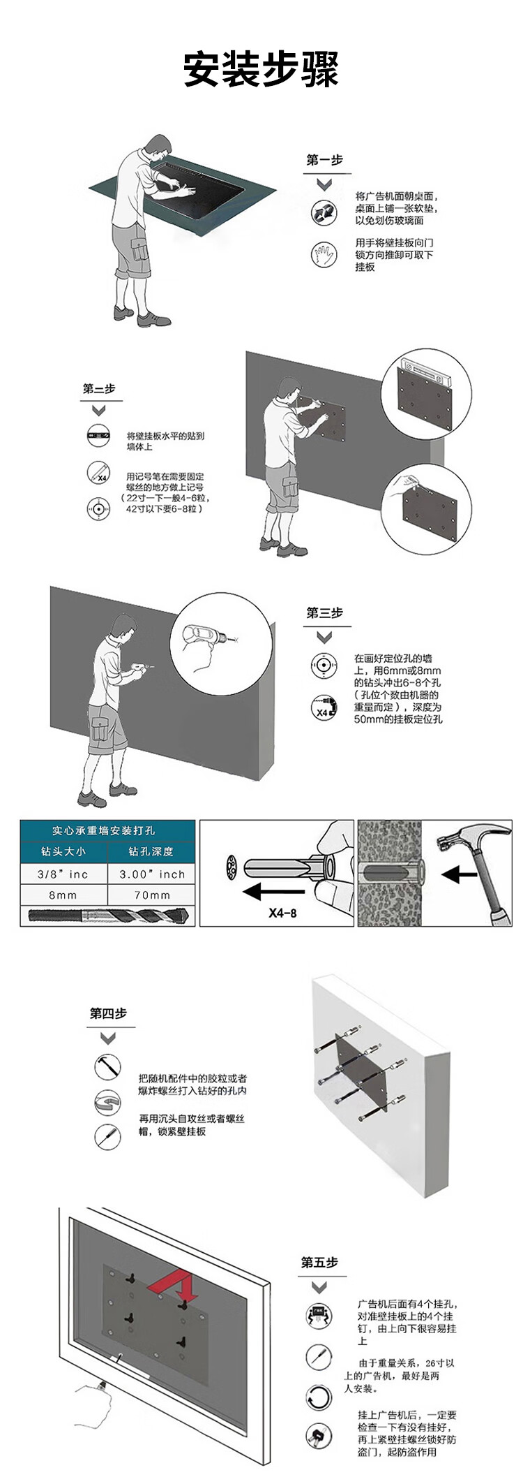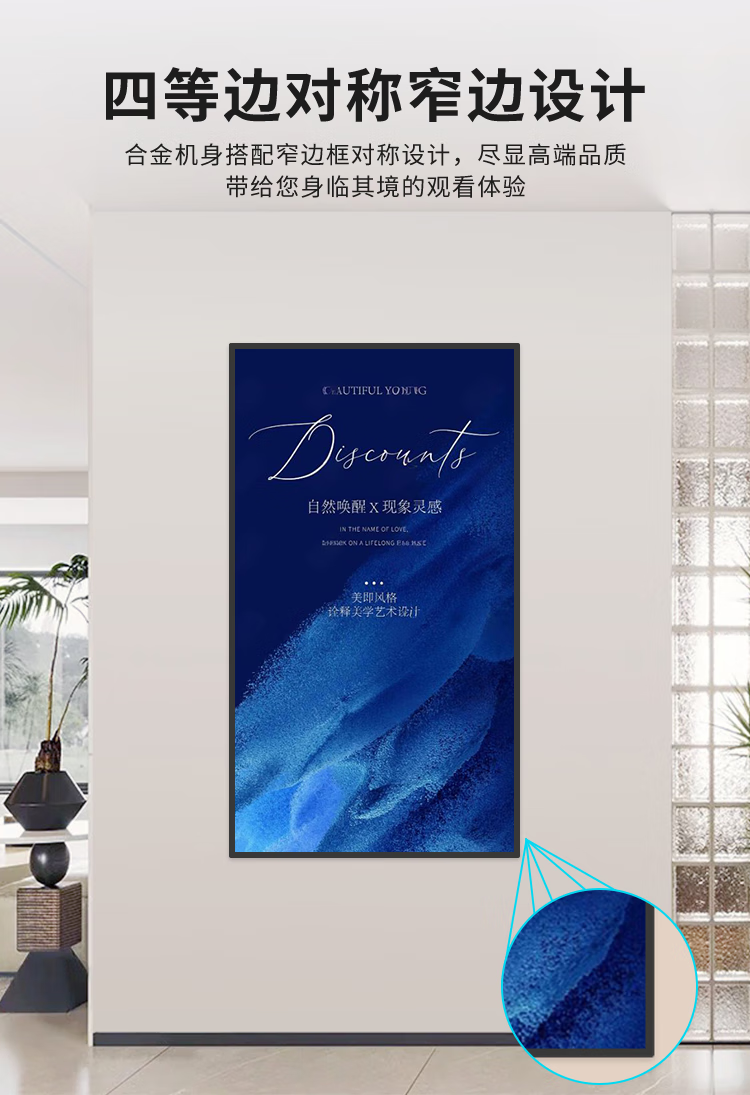 购买的是46寸网络版广告机给力,且壁挂架子的超薄装法,与我的装饰框完美匹配。