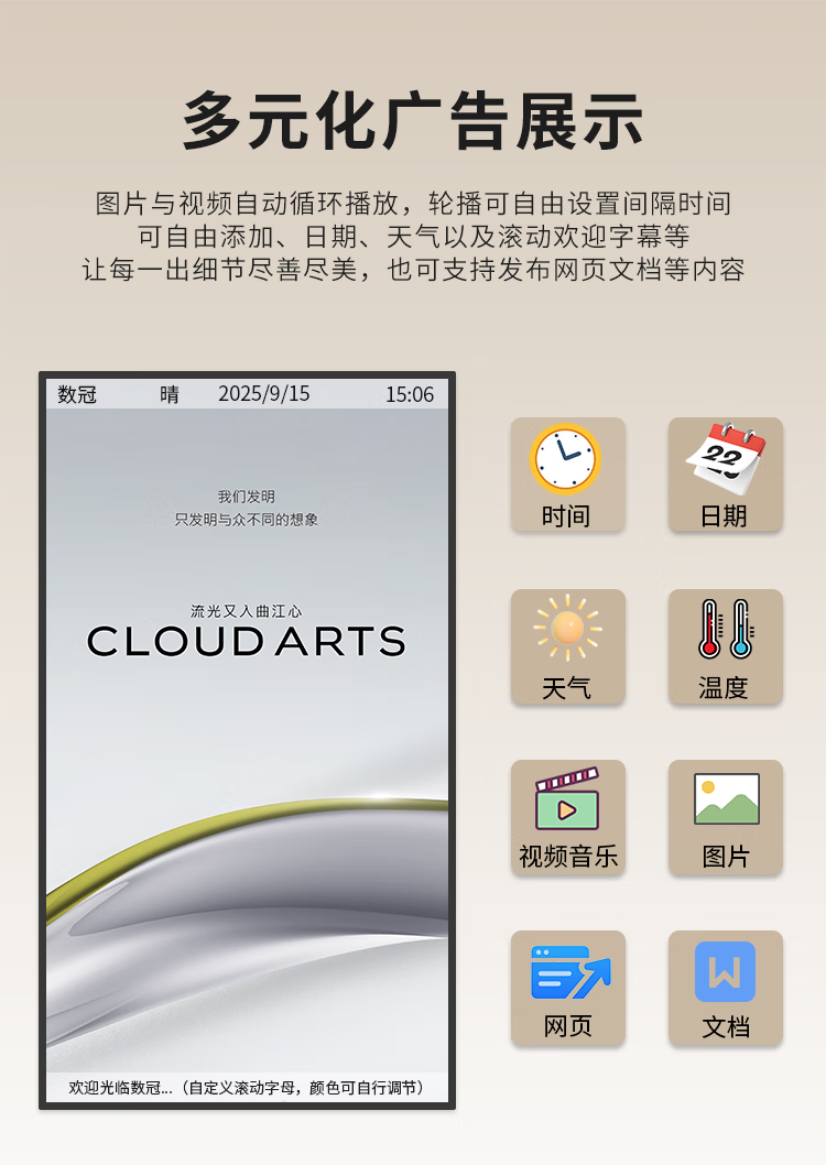 精选了好多厂家,最终选定的这家广告机,价格优惠,显现度高,画面清晰,操作简单。