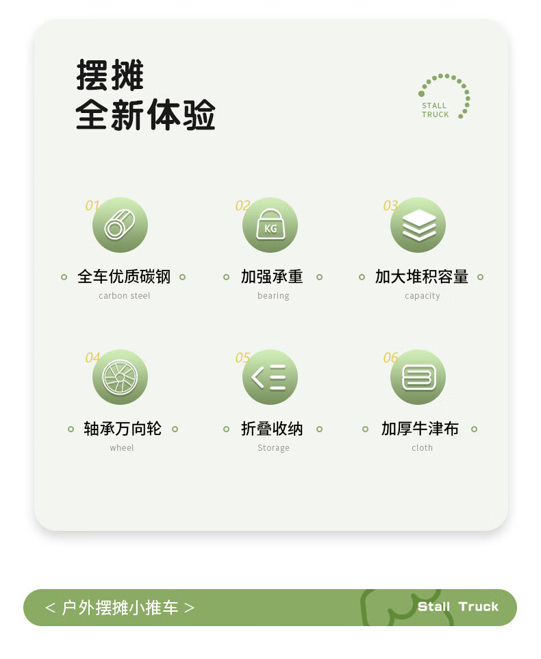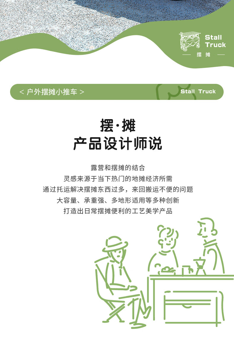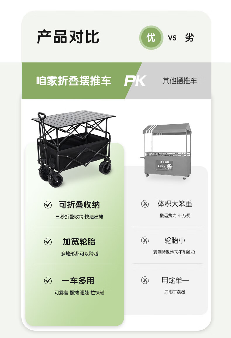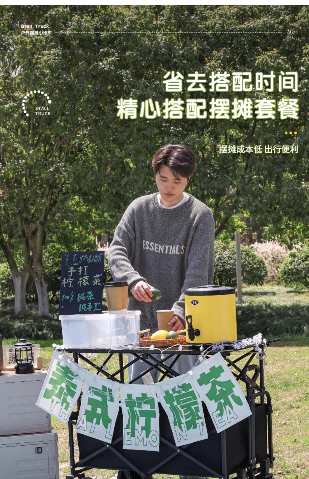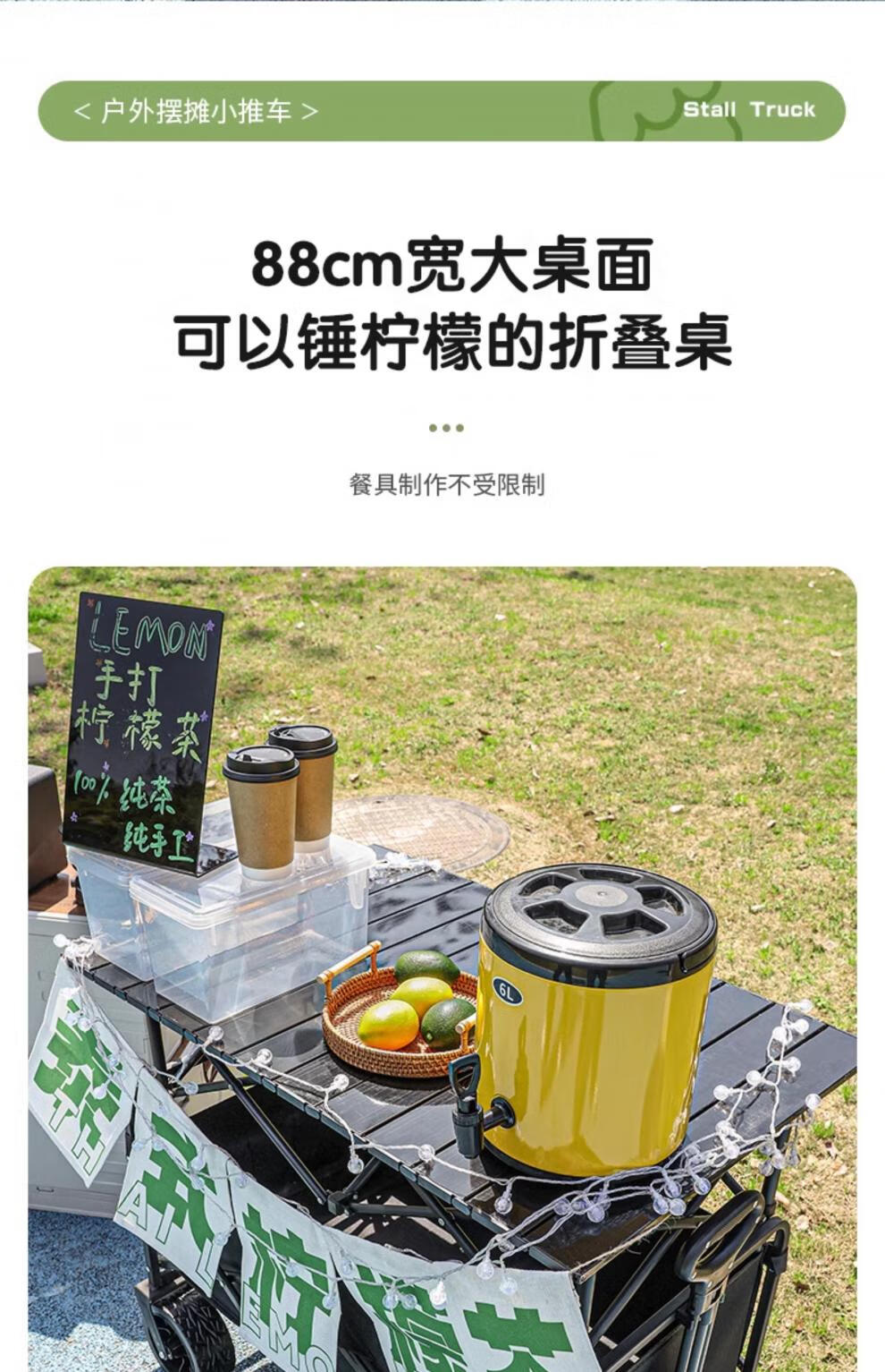 靠森(Kaooseen)夜市移动地摊摆摊小推车可折叠多功能烤肠户外露营手推车遮阳伞 [便携款]曜石黑-布套双层加厚