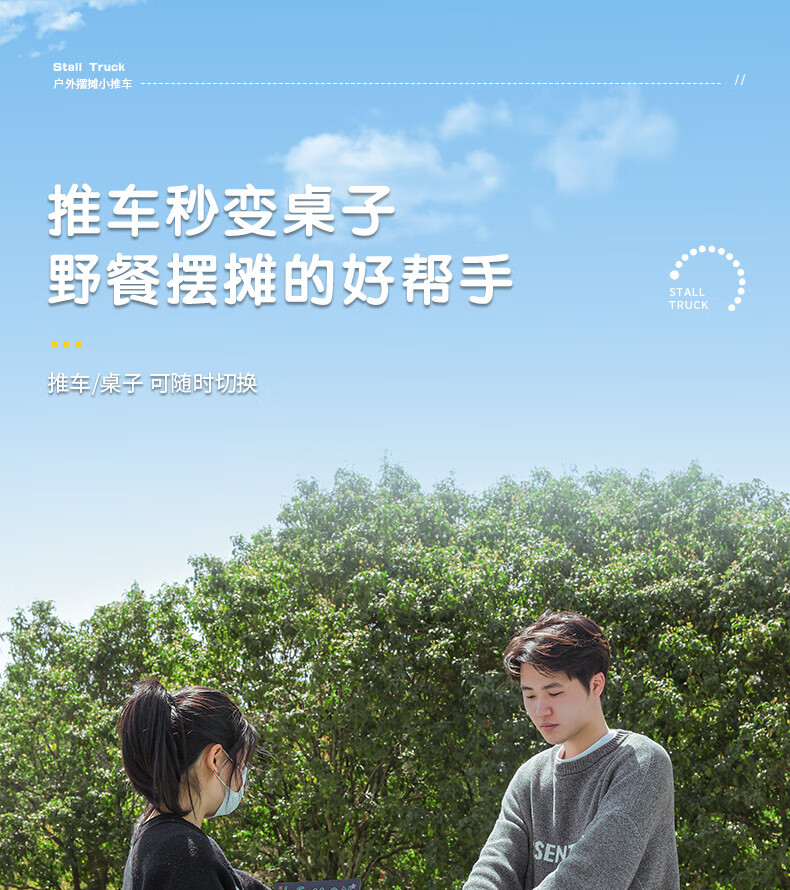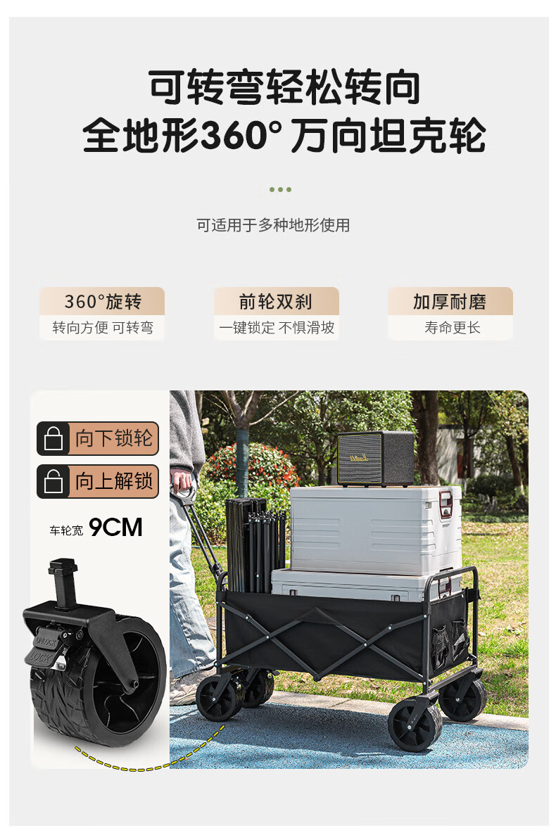 糜鸿(MIEHONE)户外露营小推车带桌板小拉车儿童营地折叠野外旅行买菜摆摊购物拖 【桌板套餐】标准款+全钢桌板