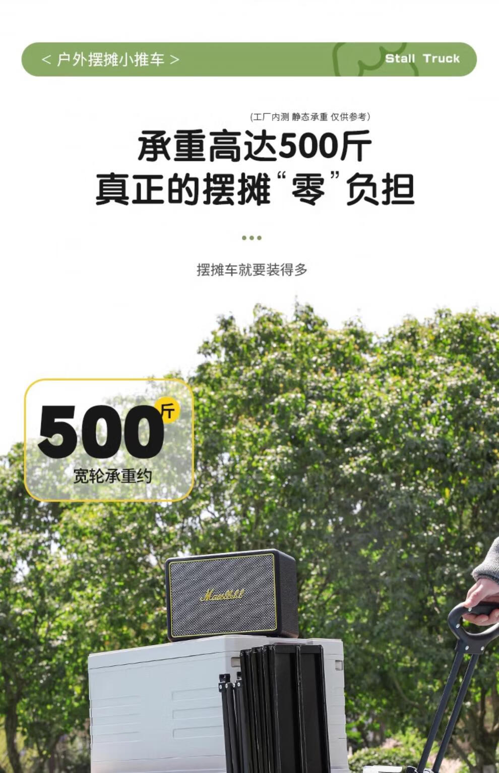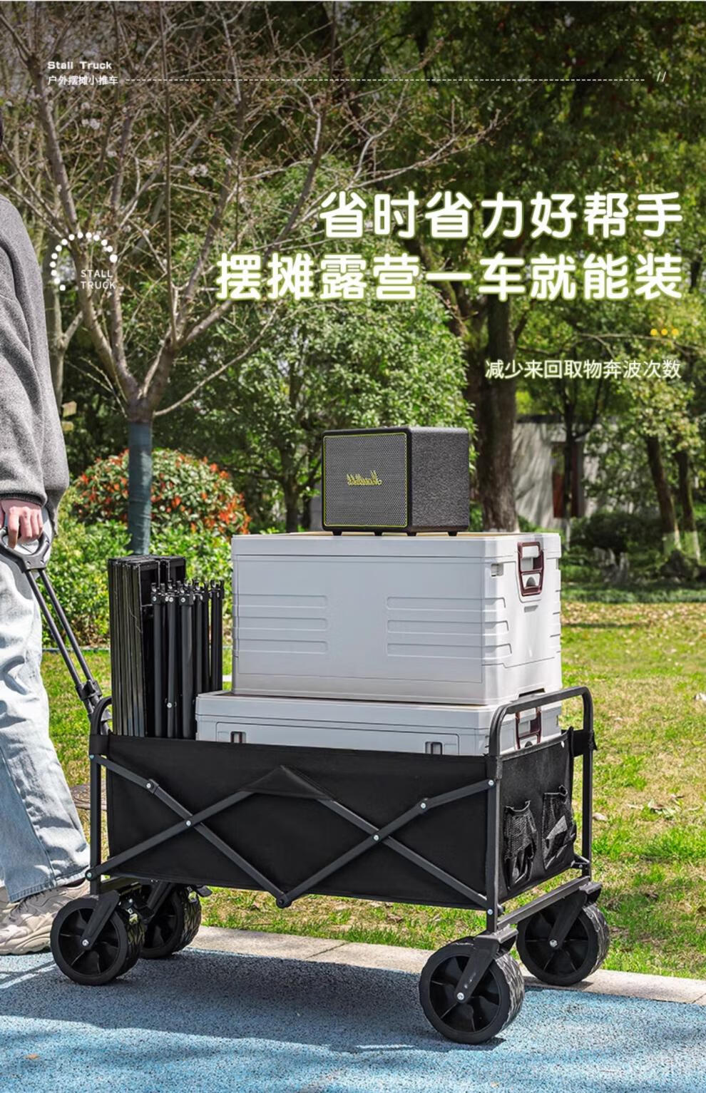 柏潮购物摆摊小推车夜市地摊折叠摆摊桌一秒收摊露营车商用烤肠机鲜花 黑色 便携5寸-拖斗