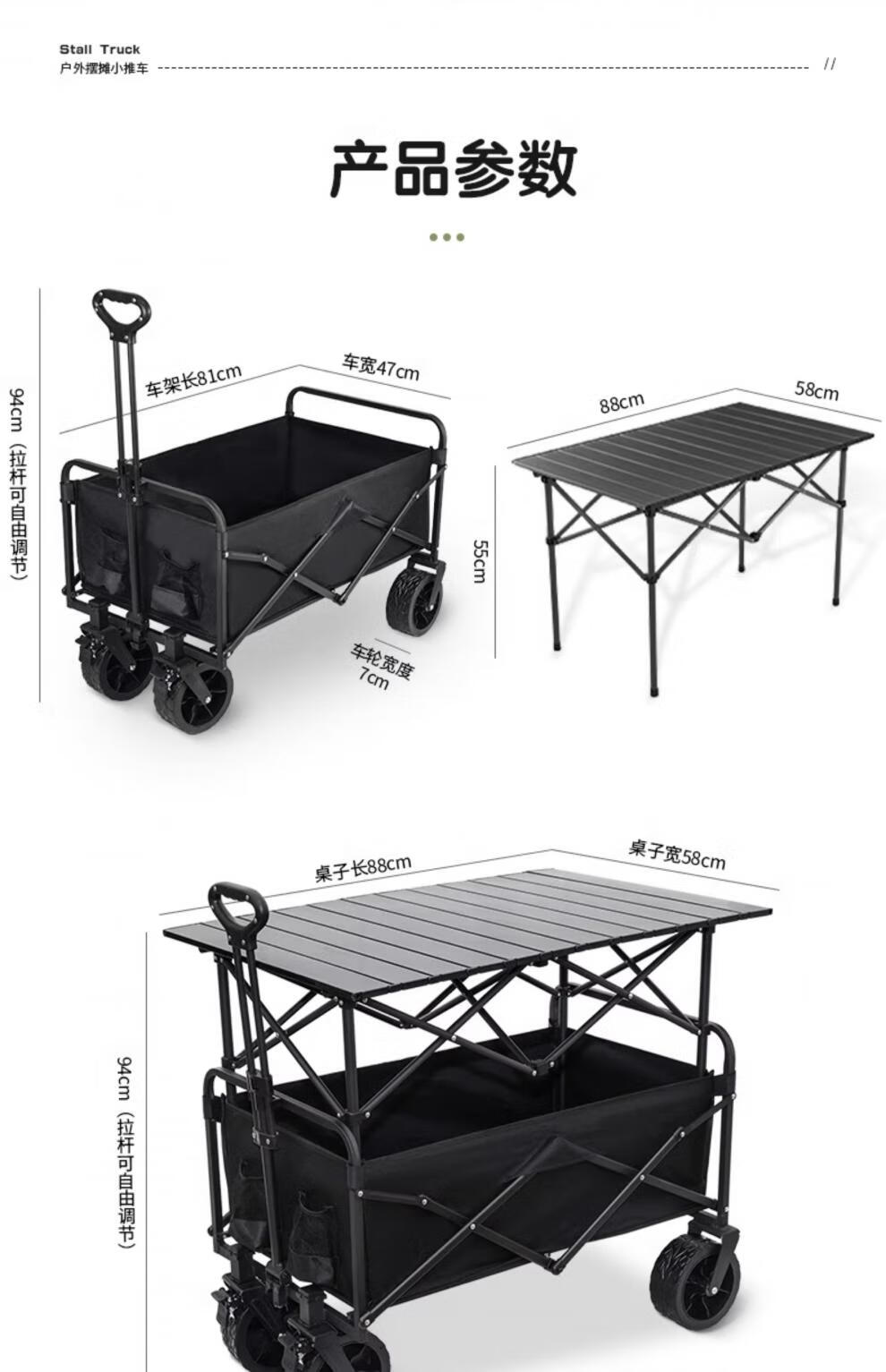柏潮遮阳挡雨夜市摆地摊可升降桌露营车摆摊车户外可折叠多功能营地车 魅影黑【双层可拆卸清洗900D牛津 【拖斗款】摆摊车+升降折叠桌+加