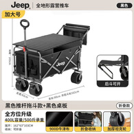 JEEP露营推车可折叠户外手推野餐车营地拖车拉杆小拉车桌板野营车 【桌板套餐】后开加大款-曜石黑+便携桌板 400L