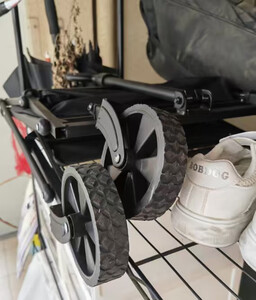 安装好后,孩子在屋里当玩具玩的挺嗨。出去试过了,拉着帐篷天幕等户外用具,很轻松,娃也不用抱着了,折叠起来不占地,车架结实,后备箱能装的下