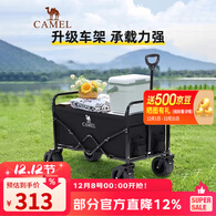 CAMEL露营车营地车折叠购物车坦克轮买菜车家用拉货取快递野营遛娃遛狗 升级宽轮, 198L 有刹车 ,黑色,2620A