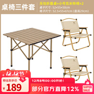 骆驼(CAMEL)户外折叠桌便携式露营桌椅套装碳钢野餐桌子蛋卷桌夜市摆摊 桌椅3件套 赠收纳袋 鹅黄色1167