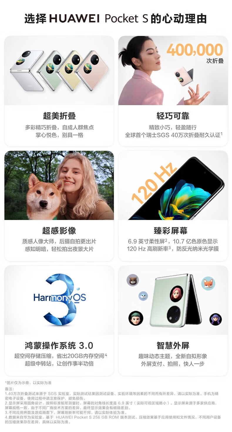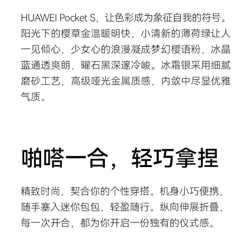 • 华为 Pocket S 折叠屏手机 40万次折叠认证 搭载鸿蒙系统 4G智能手机 曜石黑 8GB+256GB