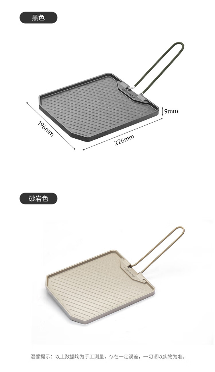 这个颜色非常好看,找遍全网就这家有,非常推荐购买!盘子大小适合两个人,慢慢烤慢慢吃,折叠把手设计容易收纳,重量也不算重。值得推荐。