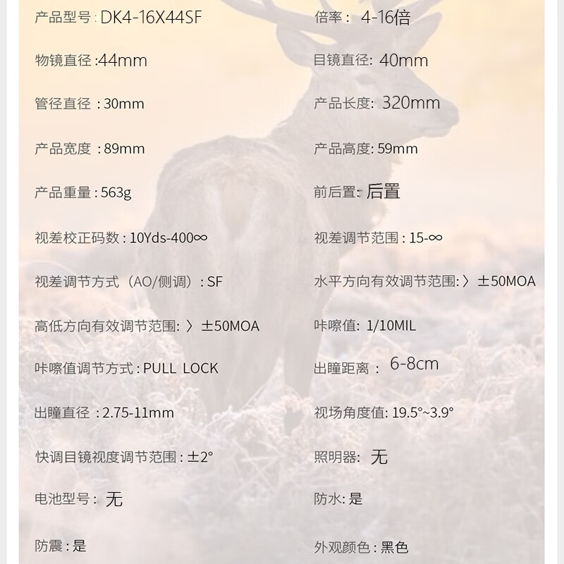 突鹰全息十字瞄镜3-9倍狙镜高清抗震光学镜瞄准上下左右可调4倍8倍镜 突鹰R4-16X44SF 20MM皮轨