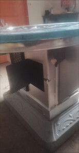 炉子收到了,先用的烧柴火的内胆,特别好用。水箱一会都烧开了,铁壶烧水也快。炉子有桌面稳着炉子吃饭还暖和