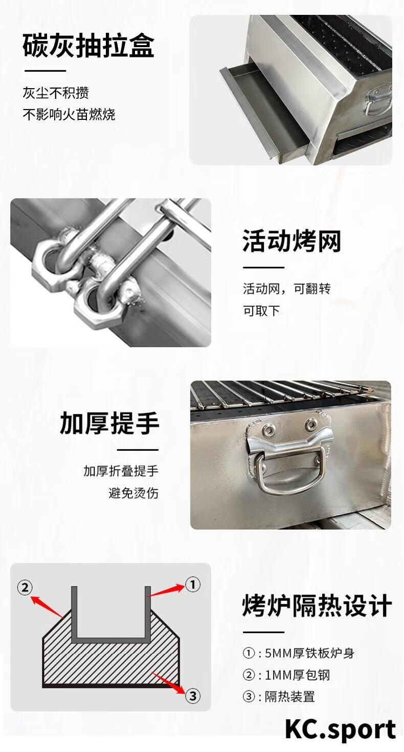 Beate Lesch带抽屉不锈钢烧烤炉子烤羊肉串日式烧鸟炉木炭商 长60cm内宽20总高25内高12