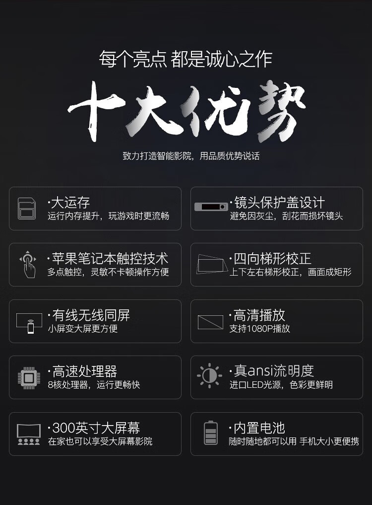 投影亮度:亮度非常清晰,投屏效果非常好。 投影色彩:色彩鲜明,效果很好。 音质音效:音箱效果非常好。