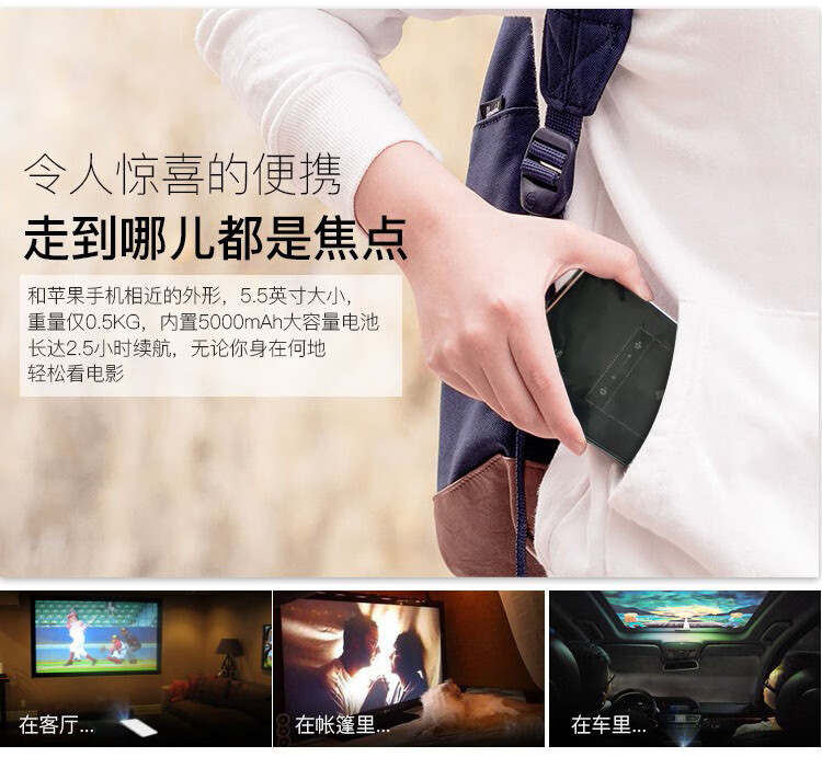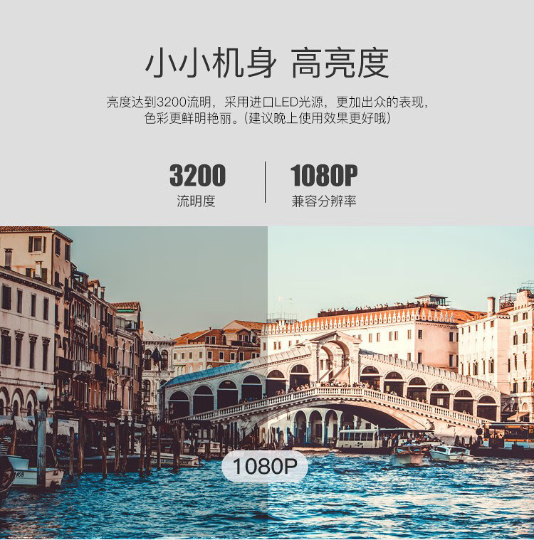 一直想买一台便携投影仪,选了这款,投影仪小巧,跟手机差不多大,很清晰,看起来比之前那台大的投影机效果还好。选择的3d版,可以看3d视频,立体感很强。期待周末露营效果