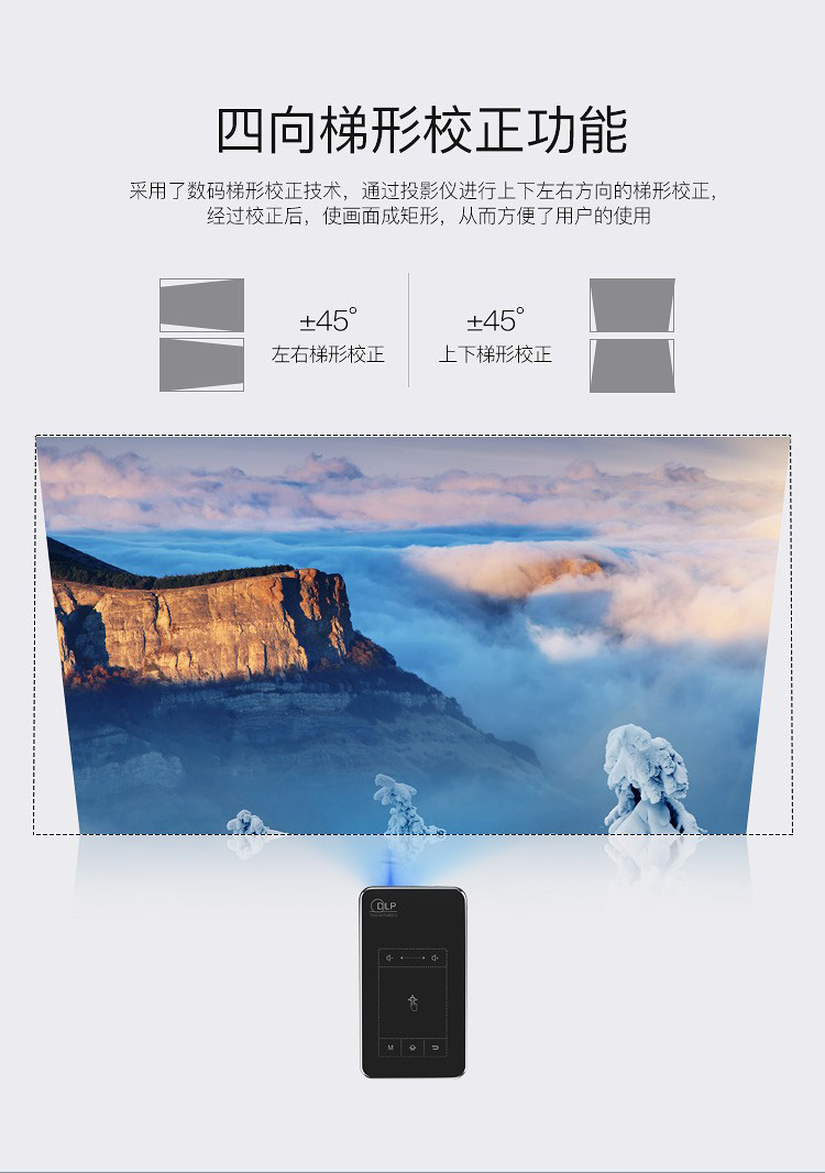 特别喜欢的便携式小投影仪 外形外观:漂亮大气 投影亮度:非常清析 投影色彩:鲜艳亮丽 音质音效:无杂音 操作难易:简单 其他特色:方便携带,值得购买哦