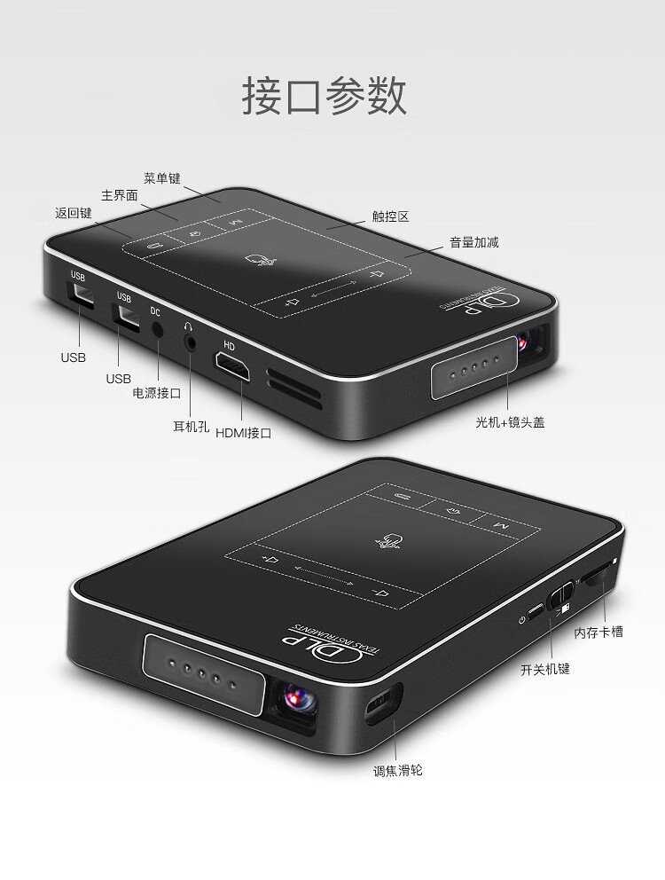 澳典便携式高清投影机投影器家用小型超小手机投屏微型DLP随身携带充 8G普通国内版黑色 官方标配