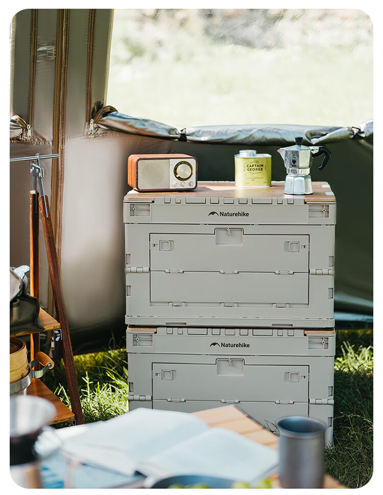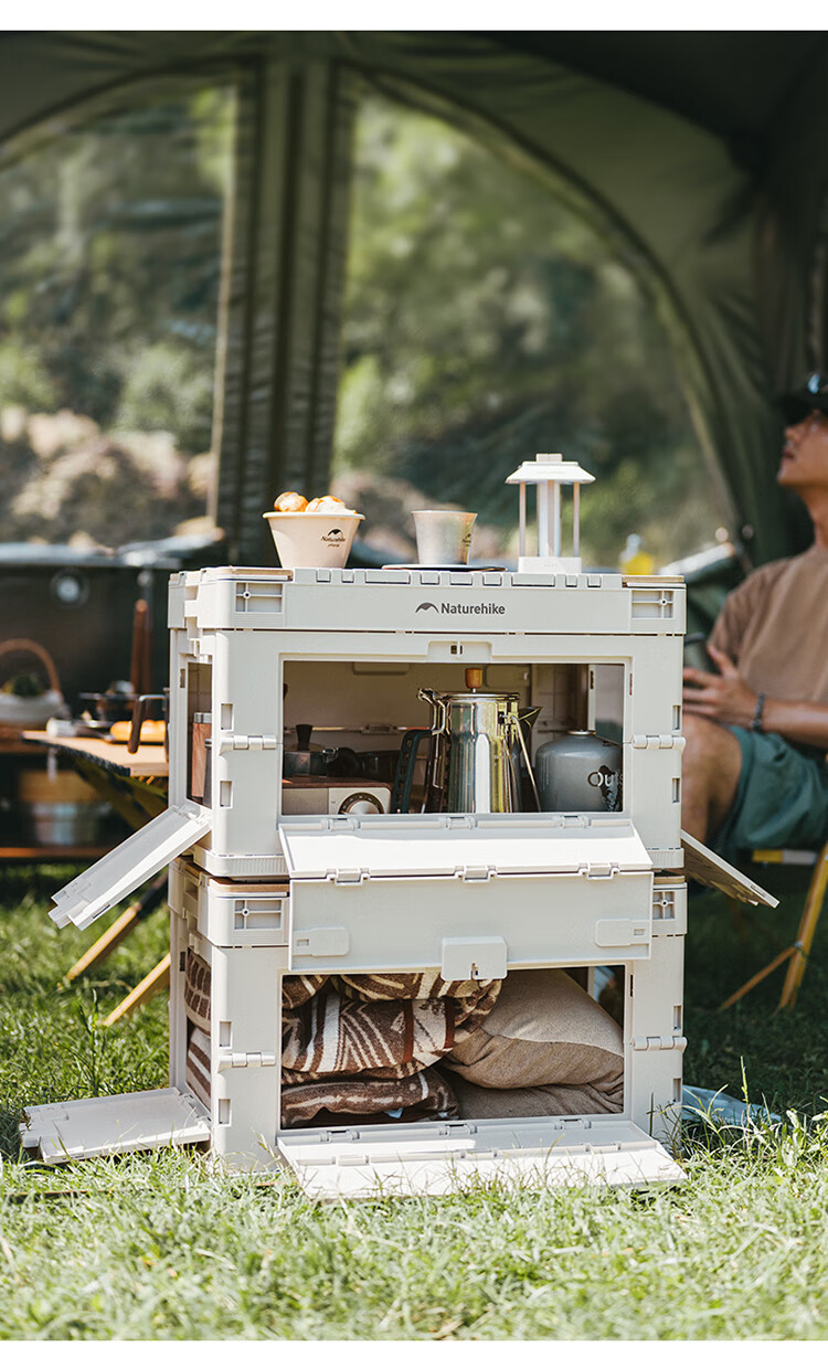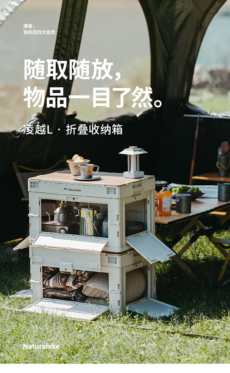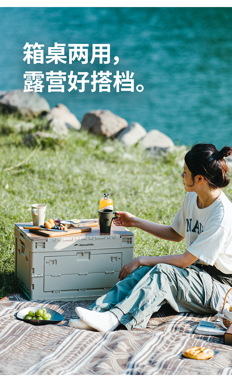 NatureHike挪客凌越S户外PP大容量收纳箱精致露营便携折叠箱野营家用储物箱 浅米灰50L
