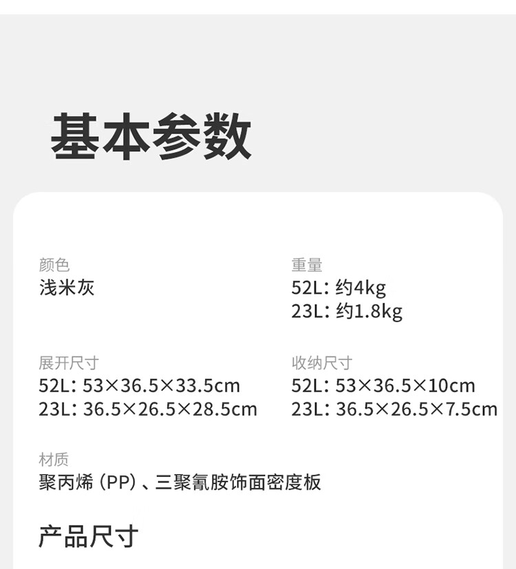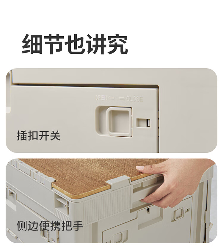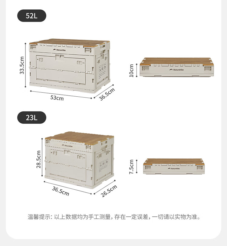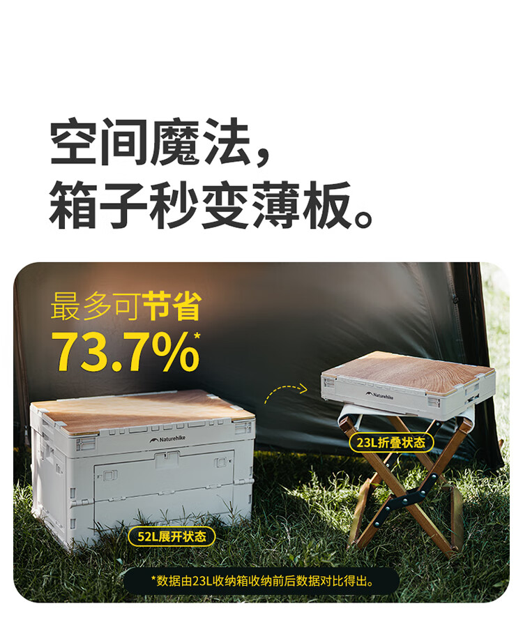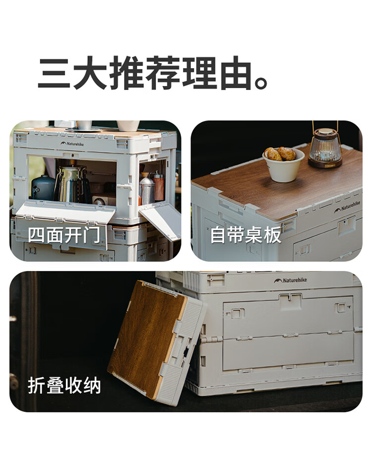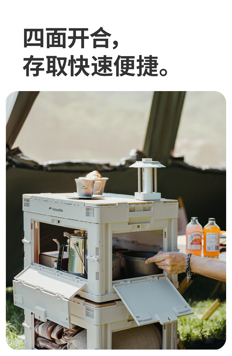 NatureHike挪客凌越S户外PP大容量收纳箱精致露营便携折叠箱野营家用储物箱 浅米灰50L