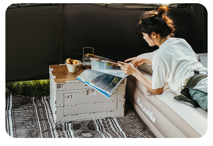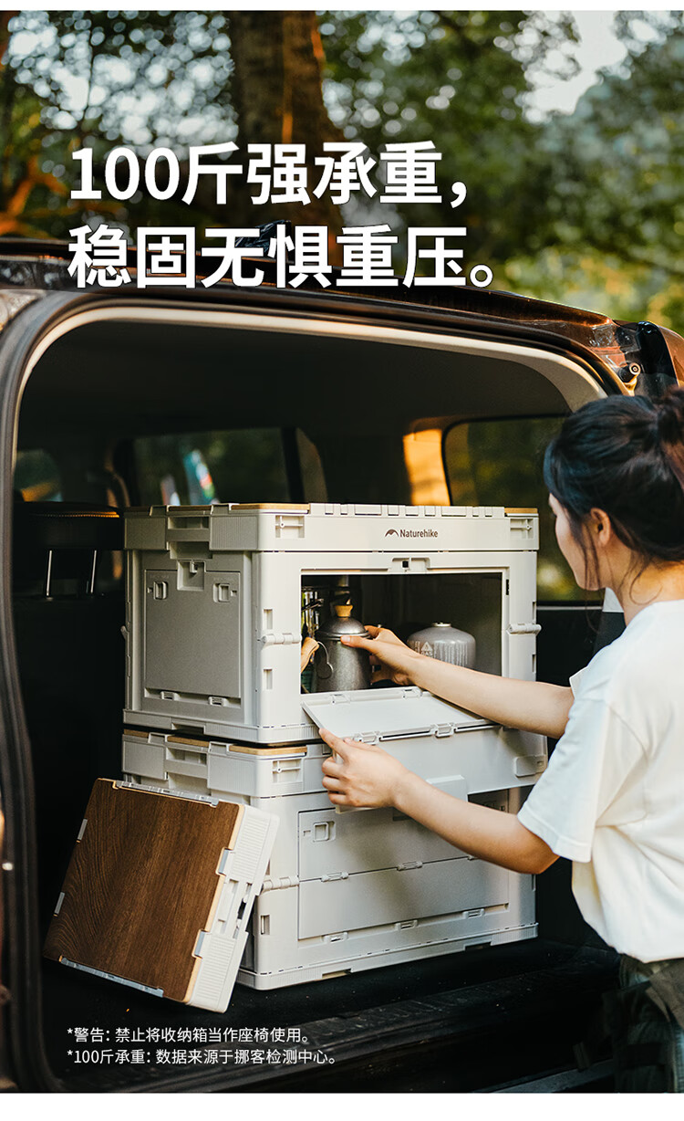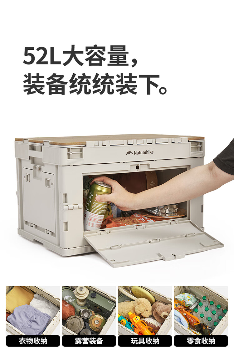 NatureHike挪客露营折叠收纳箱户外储物箱自驾游家用塑料收纳盒大容量整理箱 浅米灰/52L