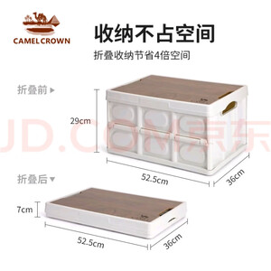 CAMELJEANS户外露营收纳箱折叠整理储物箱子野营桌杂物包1V32350536卡其 56L