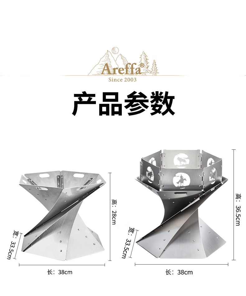 AREFFA Areffa户外高端折叠不锈钢圣火炉焚火台小火盆柴炉烧烤架烧柴炉 圣火炉