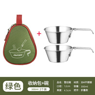 漂途户外折叠雪拉碗露营野餐餐具收纳包便携装备不锈钢套装野炊用碗 绿色包+2个小号碗
