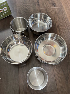 CLS户外多功能野餐套碗304不锈钢折叠碗500ml野营便携炊具登山杯餐具 500ml-小钢碗