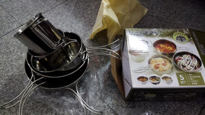 做工很扎实,拿在手里沉甸甸的。 目测的质感非常不错,这套户外便携餐具套装性价比很高。 商家给配备了一个无纺布的收纳包,方便户外的收纳和保持干净,非常实用和贴心。