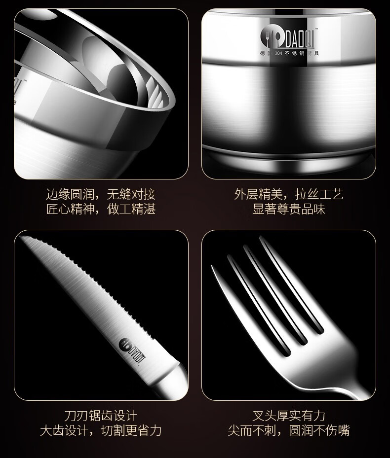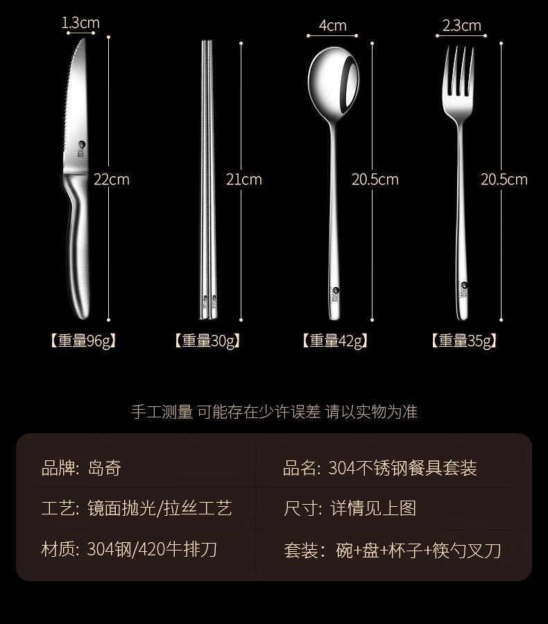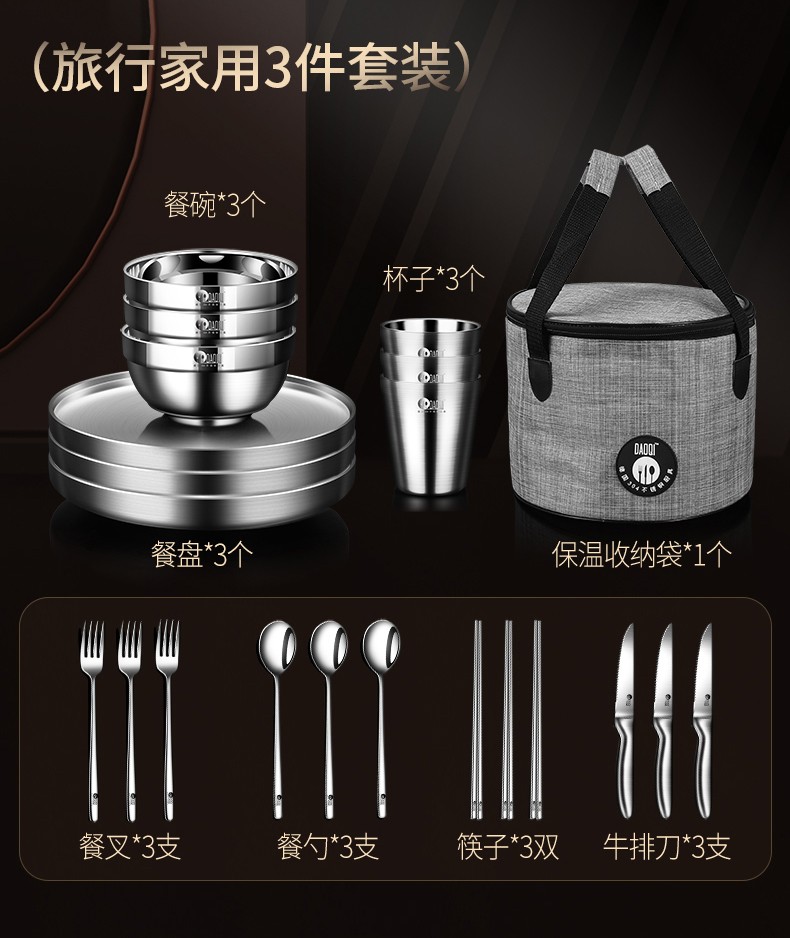 岛奇(Daoqi) 岛奇不锈钢户外旅行露营野餐餐具碗筷刀叉盘杯便携套装自驾游 3人装(户外商家推荐)