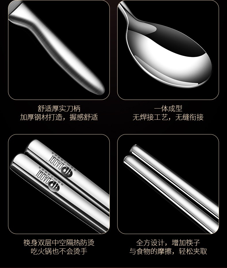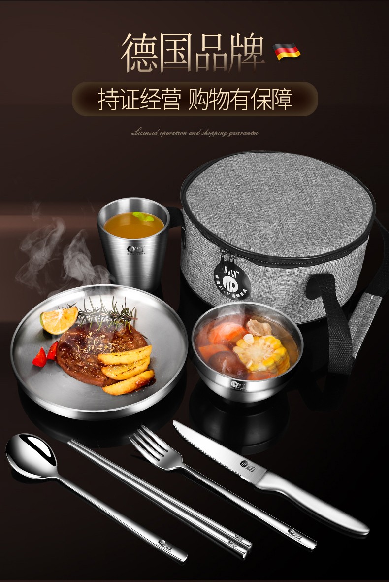 这套不锈钢餐具质量不错,收纳方便携带,户外活动使用挺棒的。