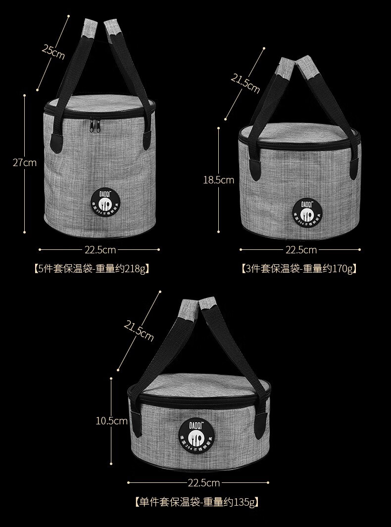 岛奇(Daoqi)岛奇304不锈钢饭盒便携折叠式户外露营野餐外带轻便旅行圆形加热 饭盒16CM无菜格+勺筷+保温袋