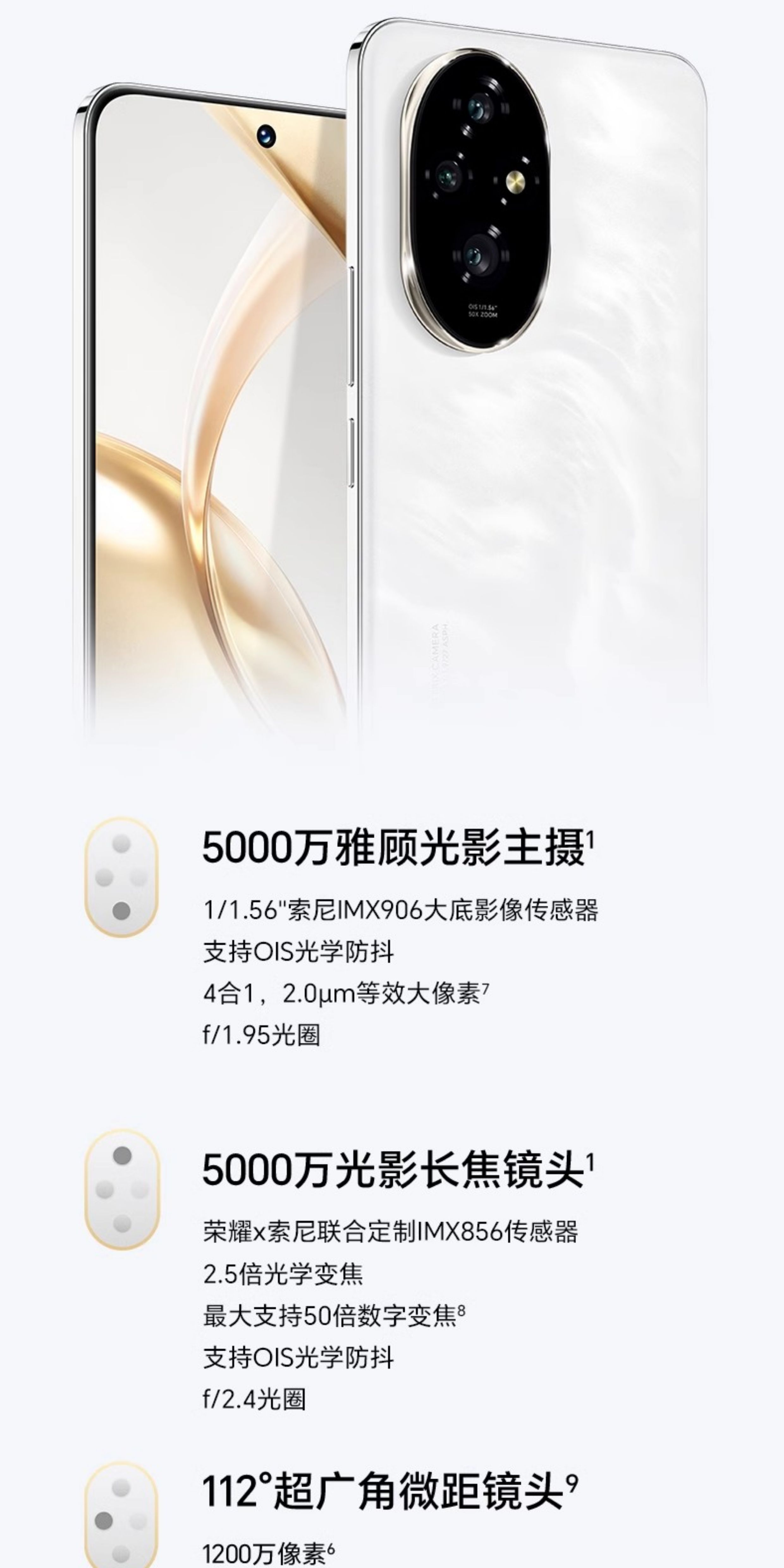 荣耀200 Pro 5000万雅顾光影主摄 青海湖电池 绿洲护眼屏 5G补贴机 月影白 12GB+256GB
